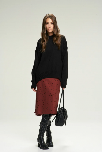 Носите такую юбку с тонким трикотажным свитером или хлопковой футболкой — кеды и грубые ботинки придадут образу городский характер. Для вечернего выхода дополните комплект шёлковой блузой и изящными лодочками, а в прохладную погоду смело надевайте лёгкий кардиган или укороченный жакет.