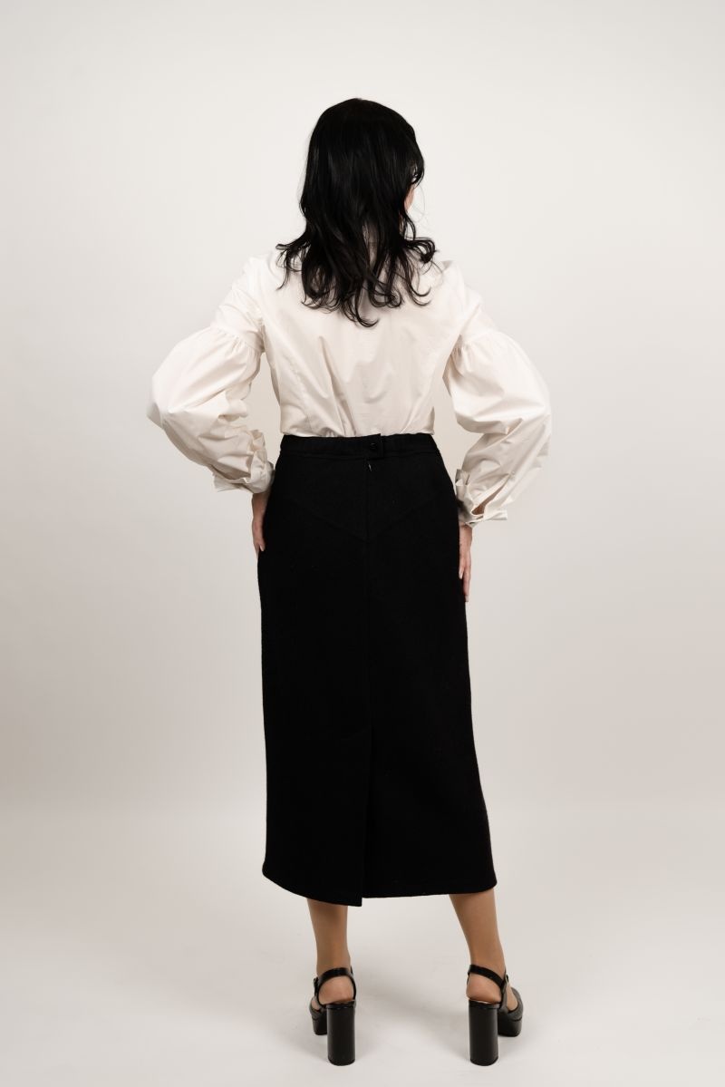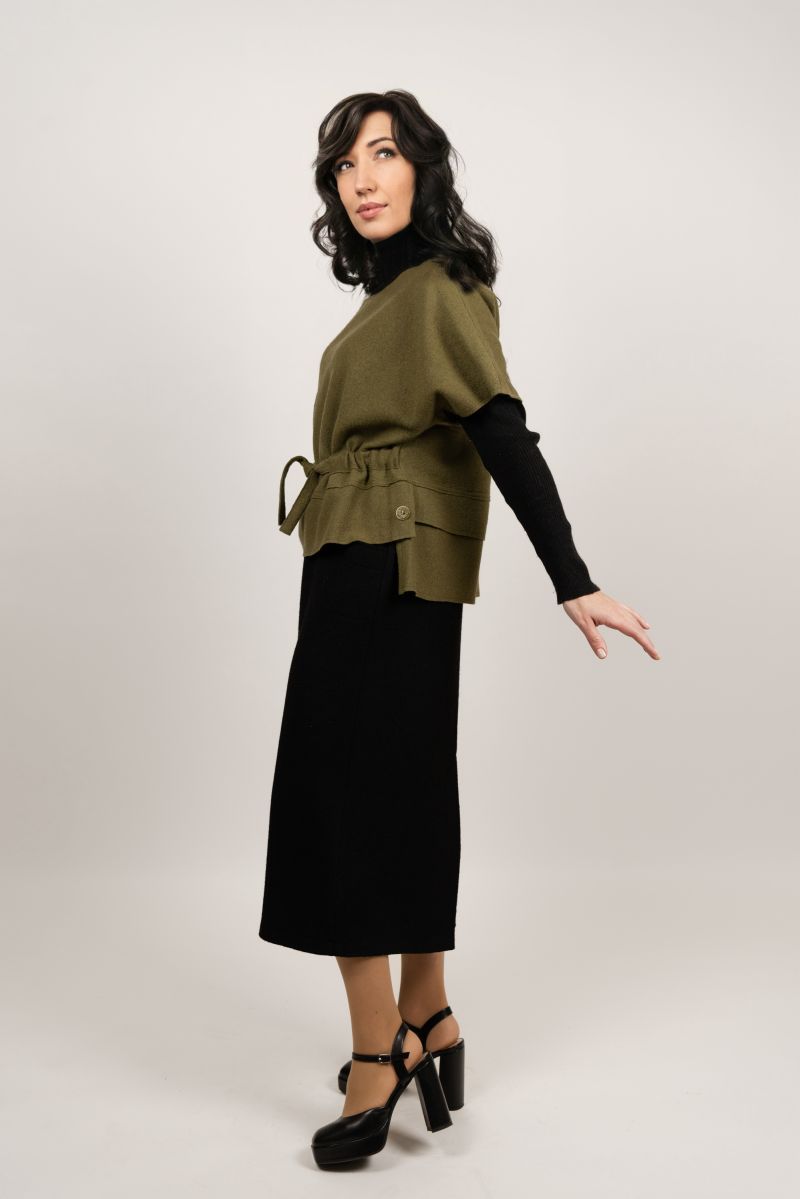 Описание: Юбка прямого силуэта, пояс на резинке, сзади потайная молния, шлица, вареная шерсть