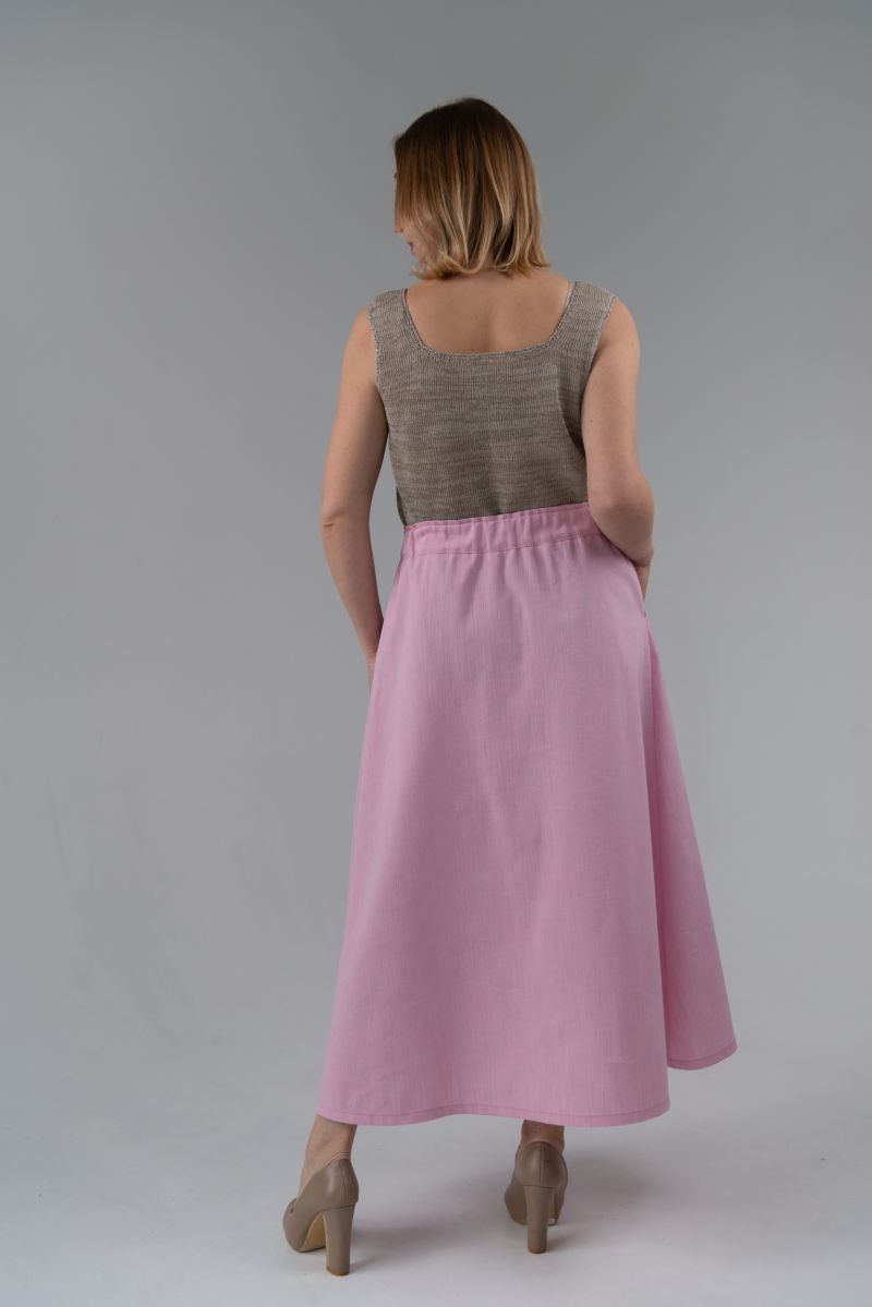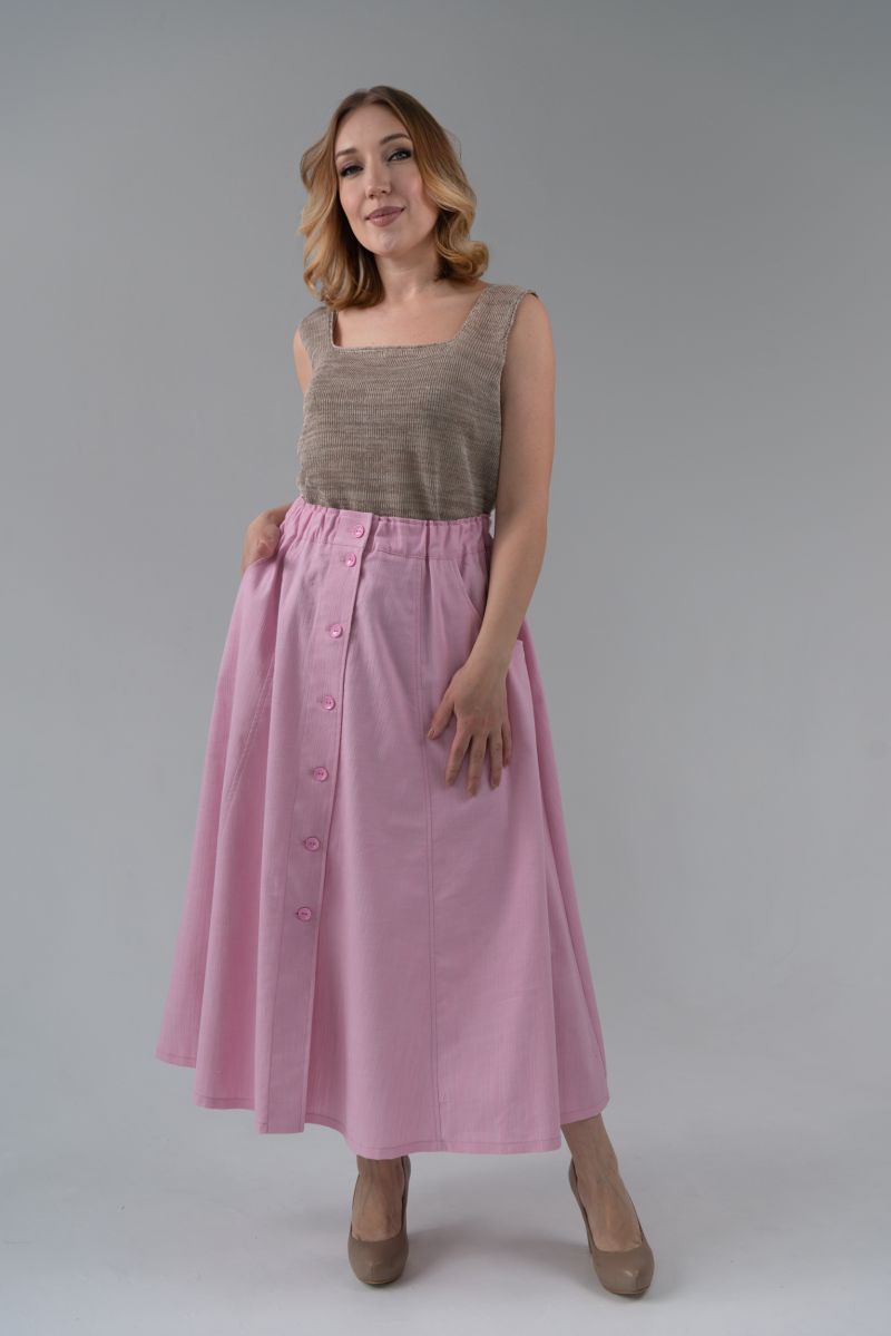 Описание: Юбка с застежкой на пуговицы, пояс на резинке, карманы.