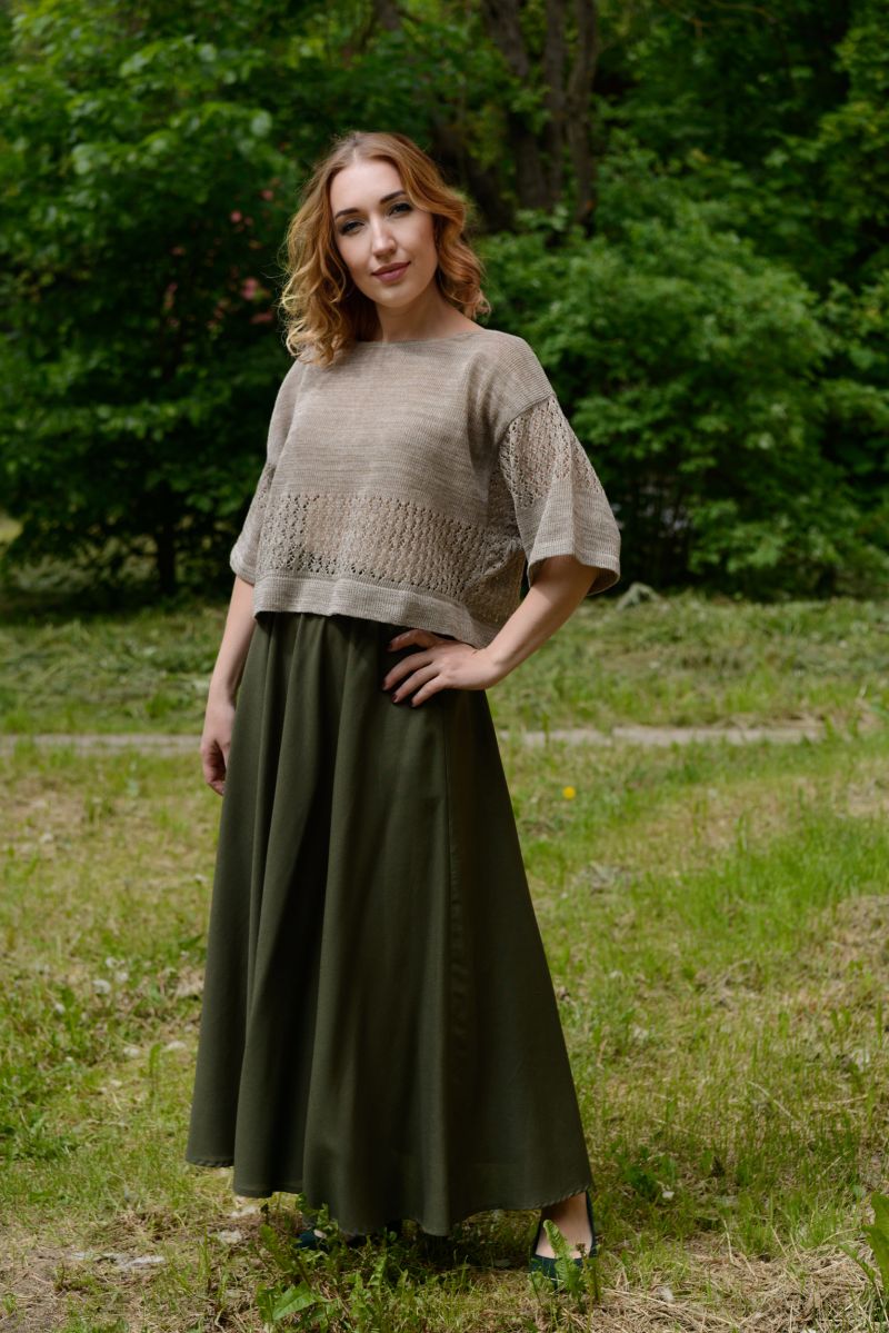 Описание: Юбка, пояс на резинке, по бокам карманы.