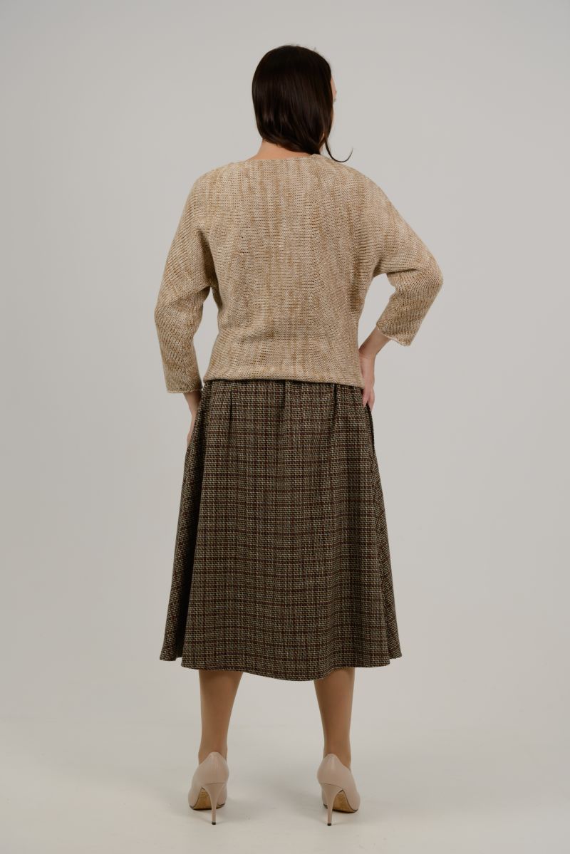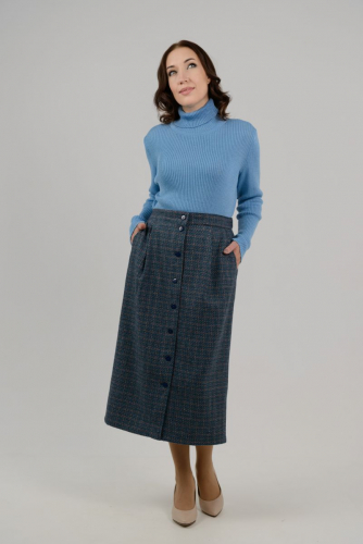Описание: Юбка, спереди ассиметрия застежка на пуговицы, с поясом, по спинке вставлена резинка, боковые карманы.