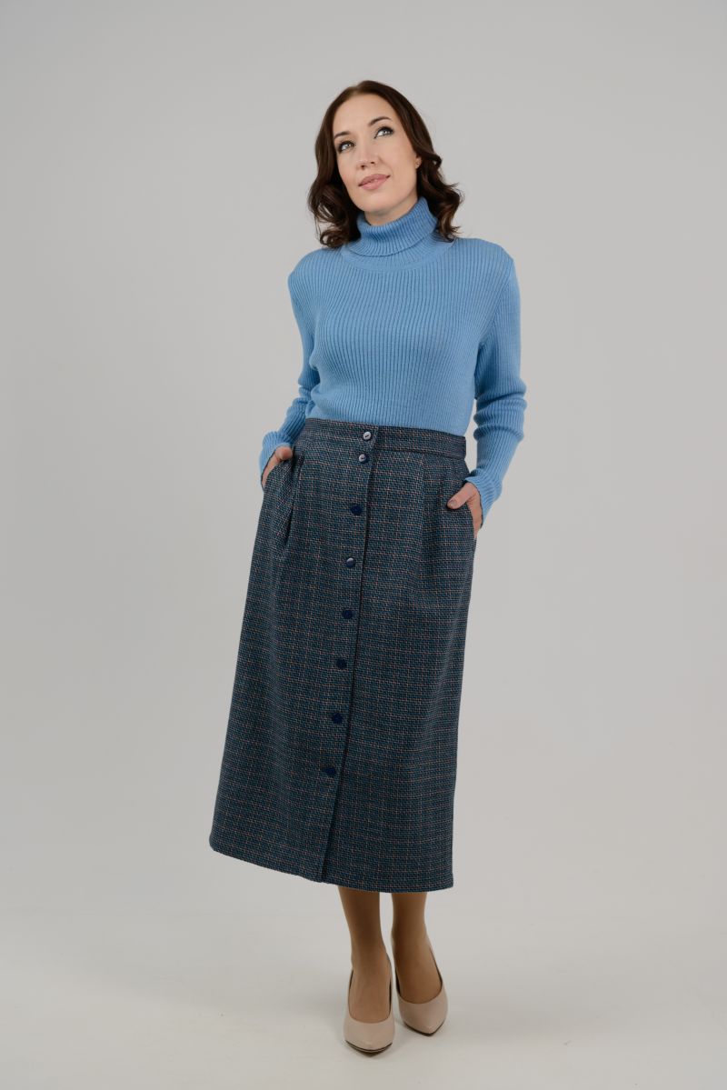 Описание: Юбка прямого силуэта, пояс, карманы, складки, застежка на пуговицы.