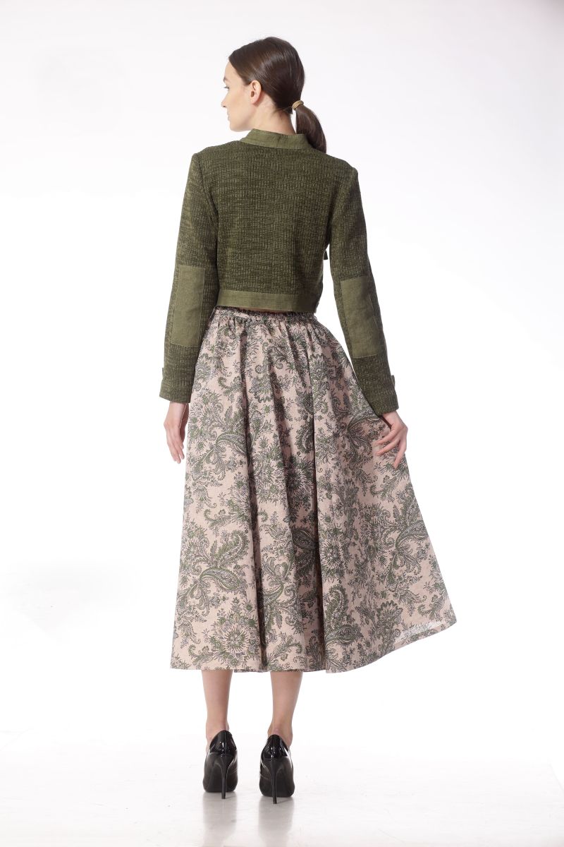 Описание: Юбка расклешенная, пояс на резинке со шлёвками, узкий пояс
