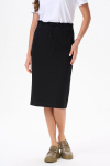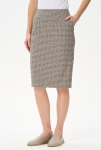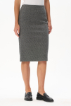Юбка миди выполнена из жаккардового трикотажного полотна. Спереди две мягкие складки, сзади вытачки и застежка - молния. Притачной пояс с застежкой на пуговицу. Рст модели на фото 177
