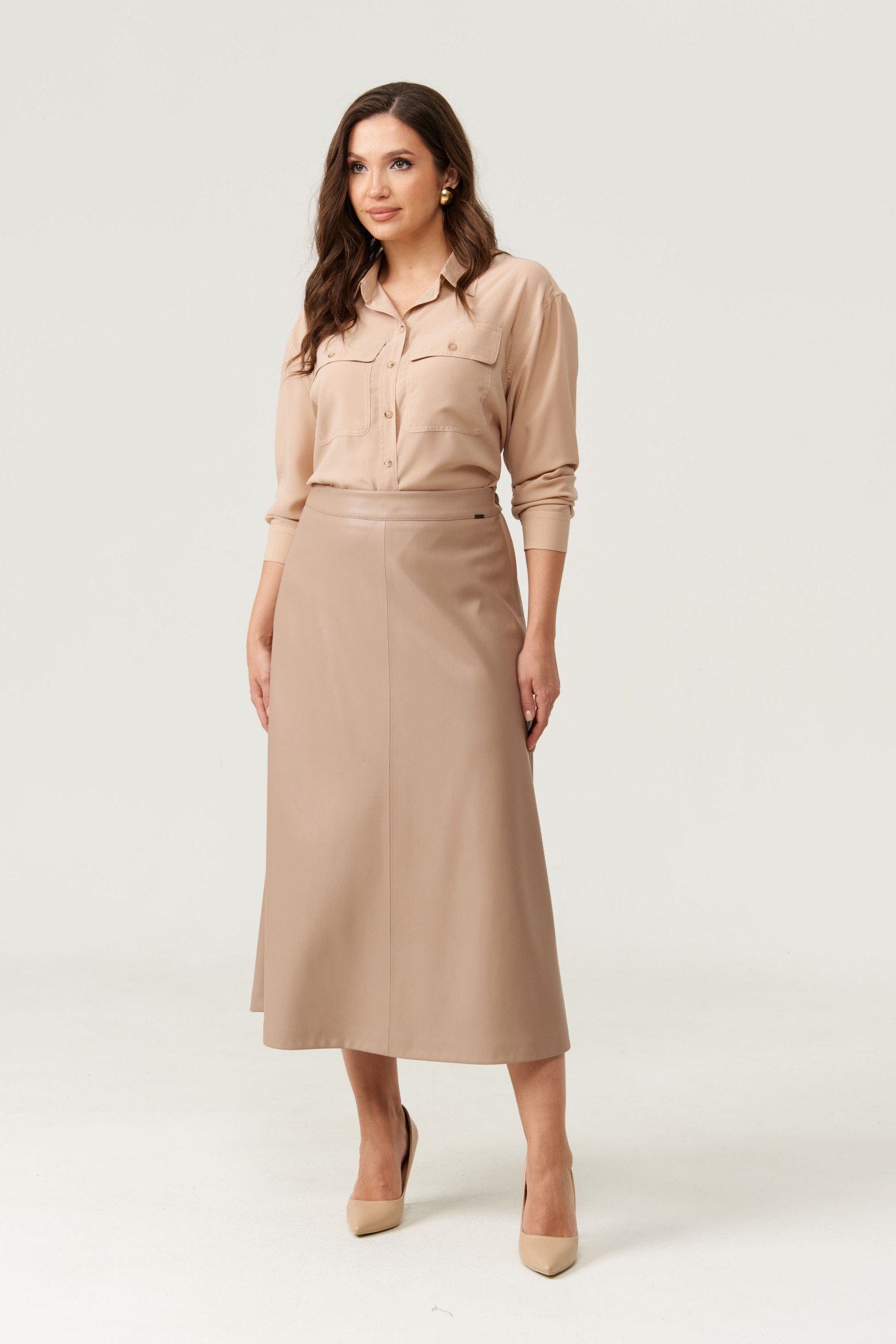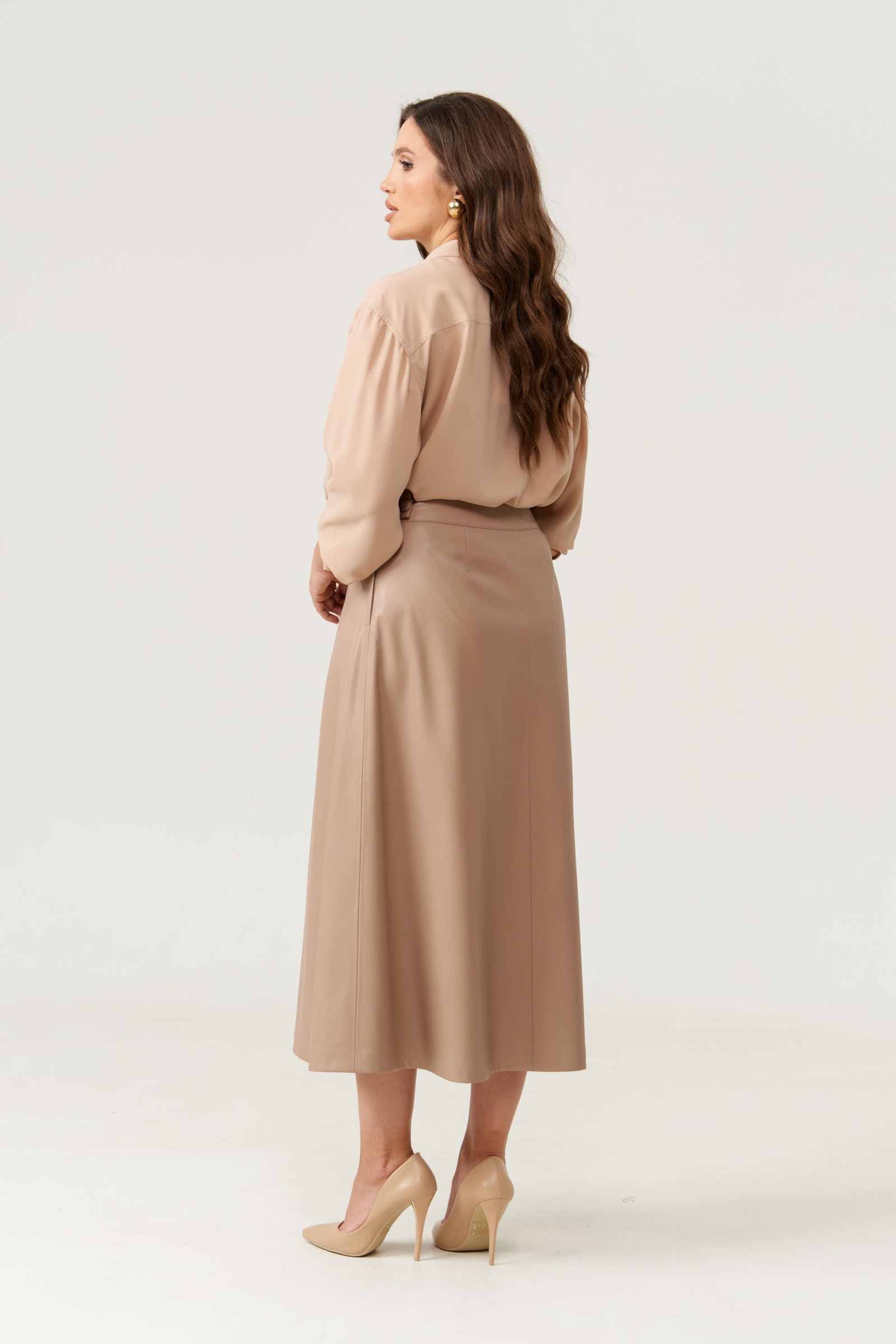 Эта женская кожаная юбка — воплощение элегантности и практичности, созданная для тех, кто ценит стиль в повседневной жизни. Ее расширенный к низу силуэт словно мягкое облако, обнимающее фигуру и придающее образу легкую динамику. Глубокий бежевый оттенок подчеркивает изысканность материала, а гладкая кожа придает образу нотки дерзости и уверенности.