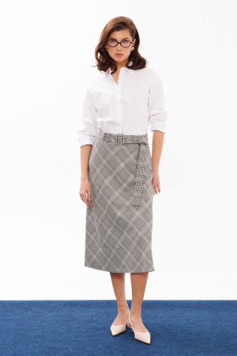 Юбка женская осенняя органично впишется в ваш базовый демисезонный гардероб, обеспечивая прекрасные комбинации с блузкой, водолазкой, гольфом, жакетом, жилетом. Она замечательно подойдет для повседневной носки и особых случаев. Юбка женская миди идеально соответствует критериям офисных дресс-кодов. Трендовая в этом сезоне юбка женская трапеция. Ткань с мягкой, приятной на ощупь поверхностью не накапливает статическое электричество, не колется. Юбка женская безупречно садится по фигуре, благодаря особенностям фасона и глубоким вертикальным складкам. Юбка женская трапеция с поясом на талии подчеркивает ее, тем самым скрывает лишние объемы бедер. Модная юбка женская послужит вам для создания эффектных образов с осени по весну.