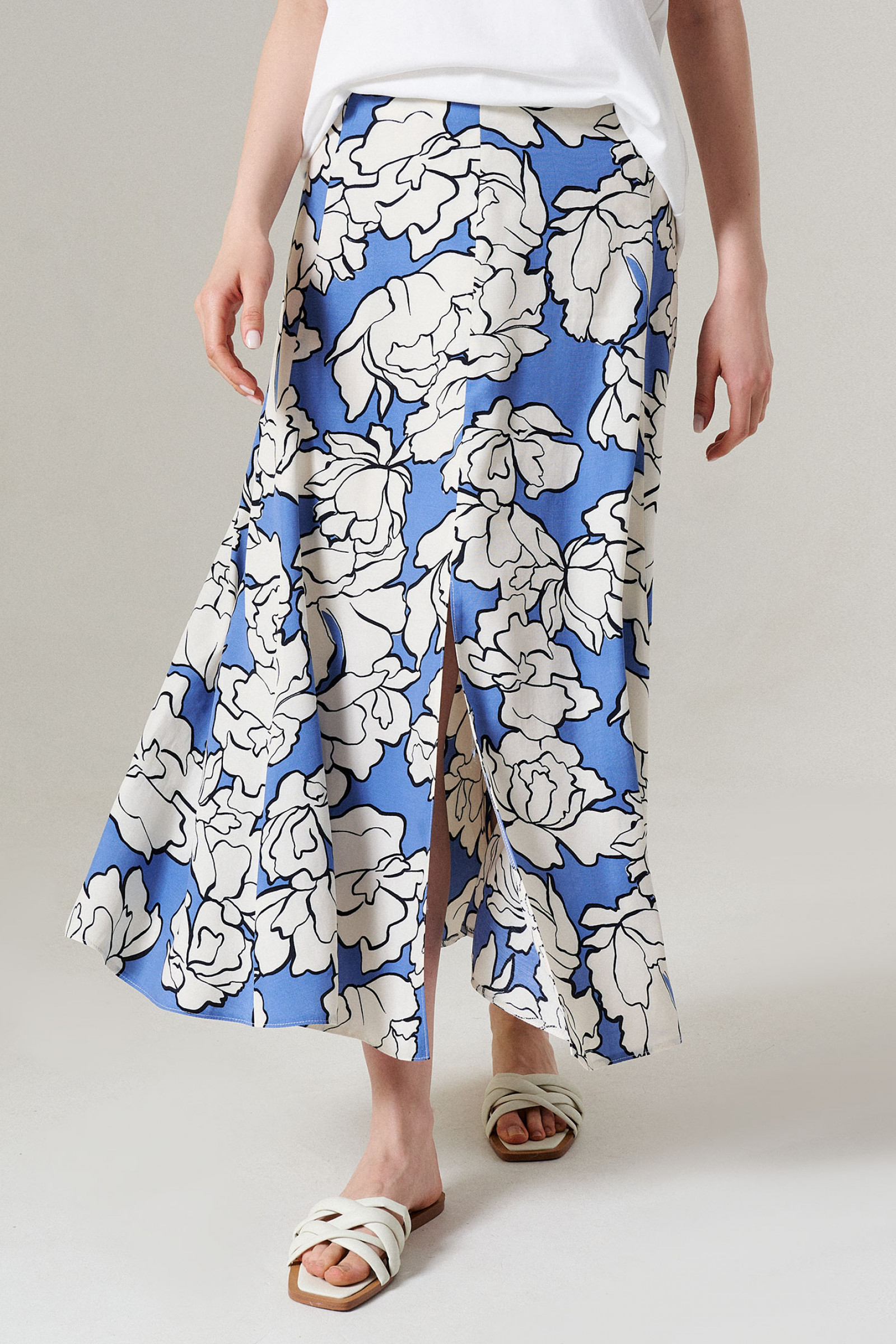 Юбка женская из вискозной ткани прямого силуэта на подкладке для повседневной носки. Подкладка из вискозной ткани. Верхний срез юбки обработан обтачкой. Переднее полотнище юбки со средним швом и разрезом в шве. Юбка имеет боковую часть. Заднее полотнище со средним швом и с застежкой молнией в шве. Длина изделия миди. Очень легкая и воздушная юбка в которой вы всегда будете в центре внимания.