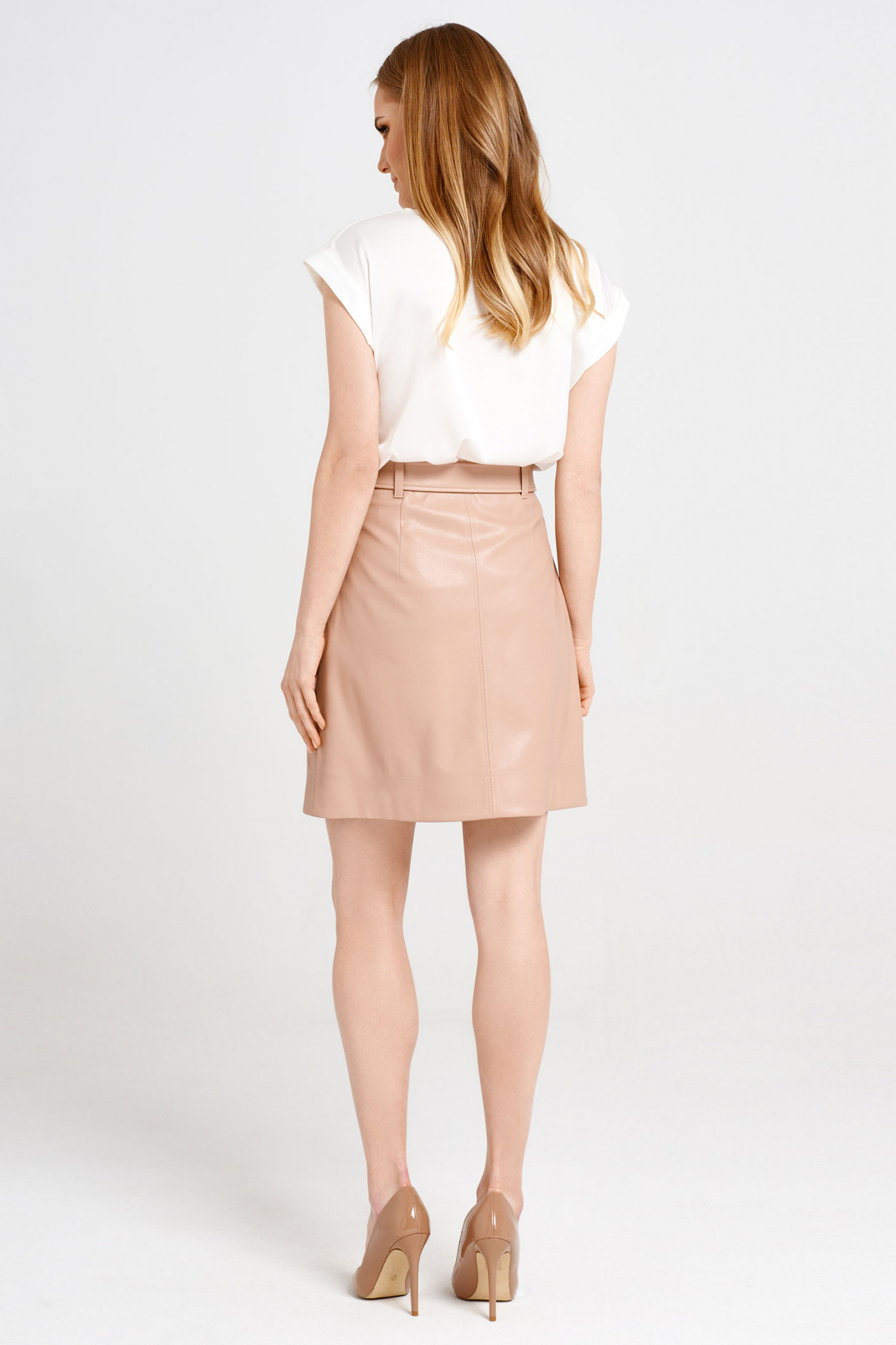 Трендом этого сезона является кожа. Эффектная юбка трапециевидного силуэта, юбка на талии прилегающая к низу расширенная, со средним швом и двумя боковыми, накладными карманами , в боковом шве тесьма- молния, с поясом по линии талии из основной ткани " кожа", отлично сочетается с блузами, рубашками и гольфами.
