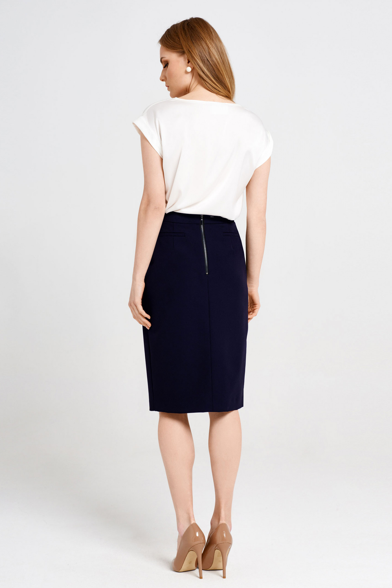 Классическая строгая юбка силуэта "карандаш".Мягкая костюмная ткань со стрейчем идеально подходит для использования каждый день. Юбка с отрезным поясом на талии.По переду выполнены вытачки и два внутренних кармана от боковых швов.В среднем шве спереди выполнен разрез. По спинке в среднем шве выполнена застёжка на молнию до верха. Также оформлены две листачки -обманки. Длина юбки чуть за колено . Незаменимый вариант для стильной и уверенной в себе девушки.