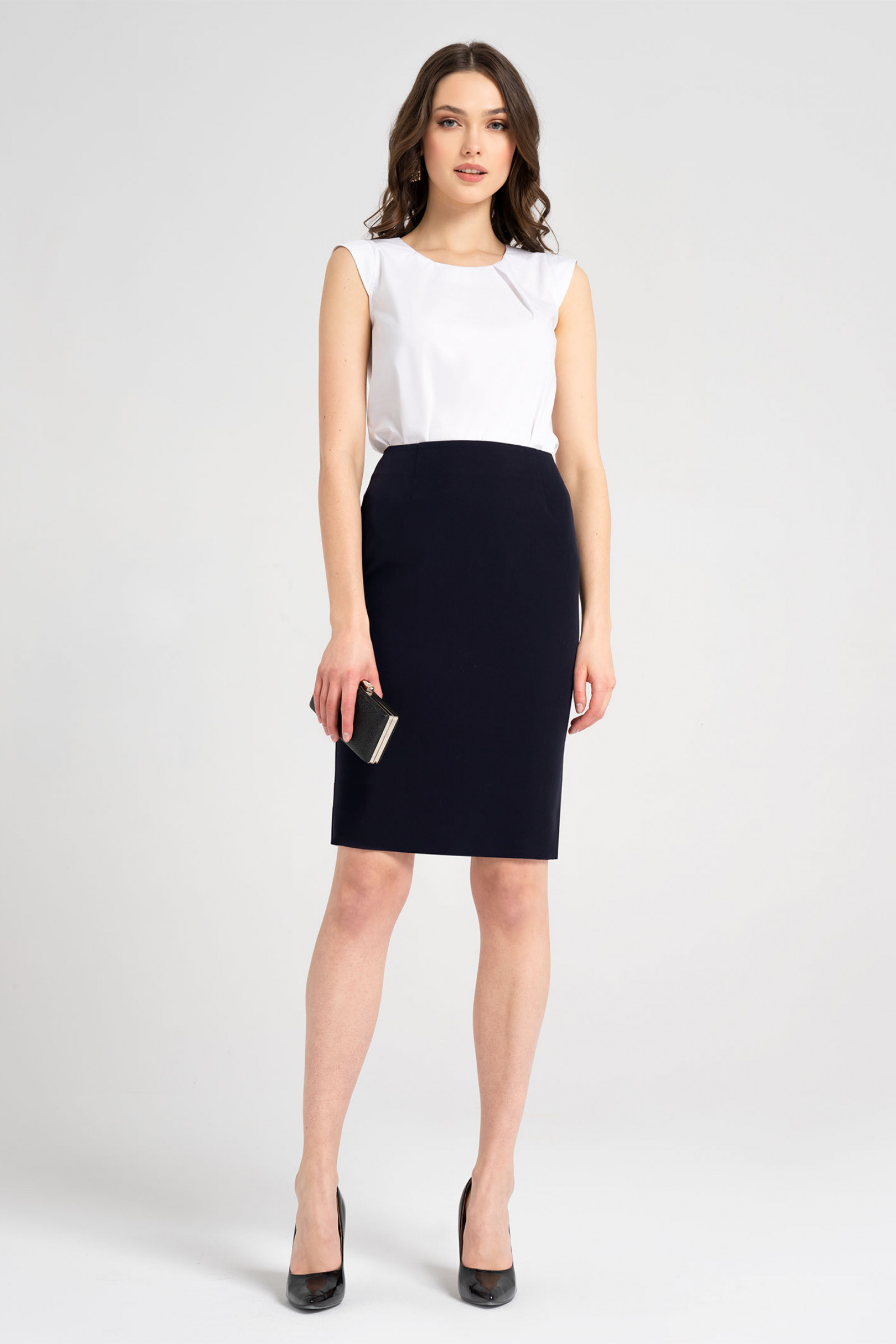 Юбка женская карандаш – удачное дополнение для блузы, рубашки, майки или топа из вашего базового гардероба. Лаконичную модель можете надевать на работу, деловую встречу. Темно-синий цвет превосходно комбинируется как с однотонной, так и с полихромной одеждой. Также юбка женская короткая отлично подходит для повседневной носки.