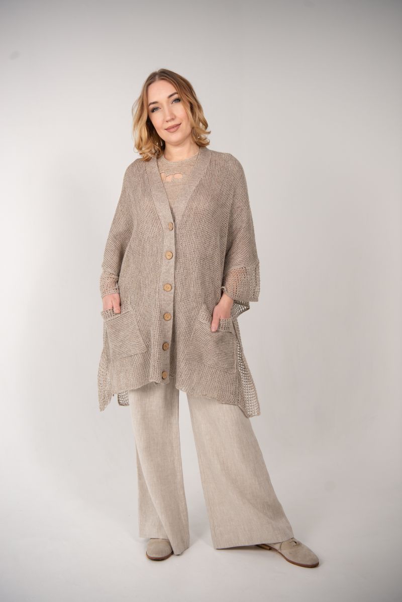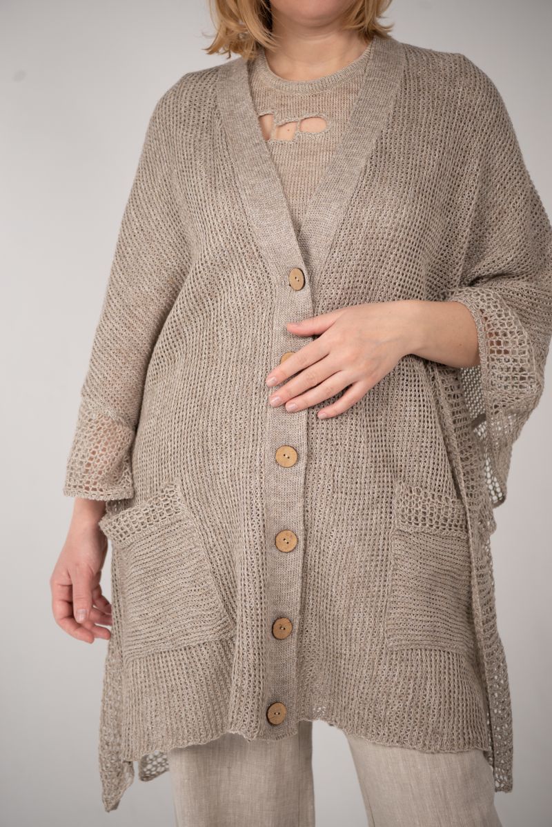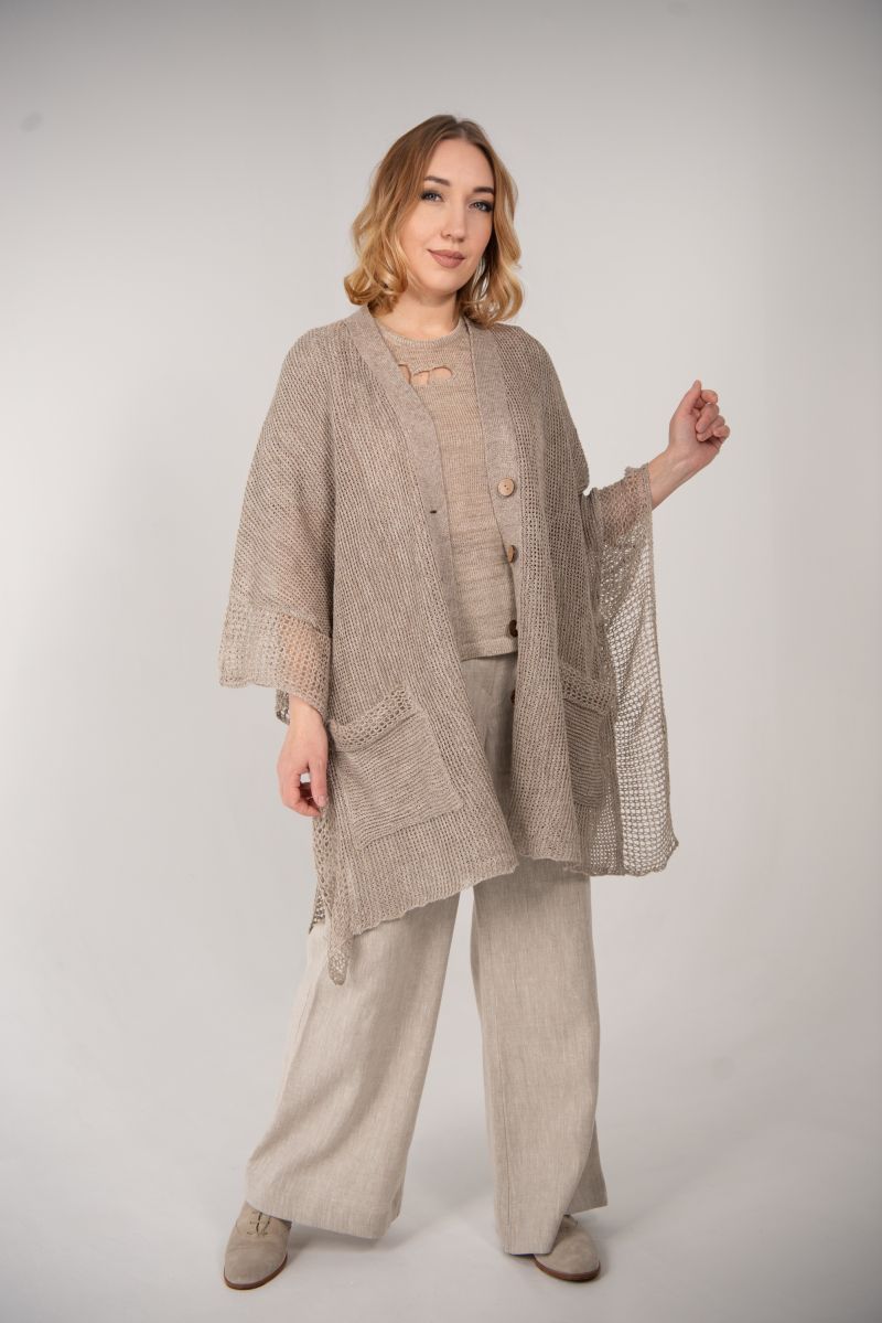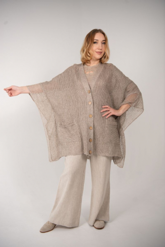 Описание: Жакет-пончо, с карманами, застежка на пуговицы, трикотаж.