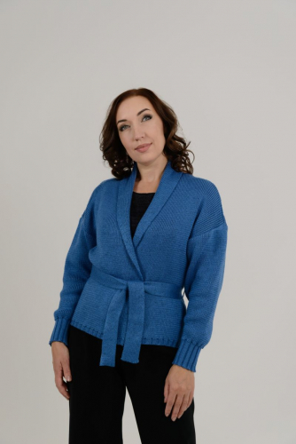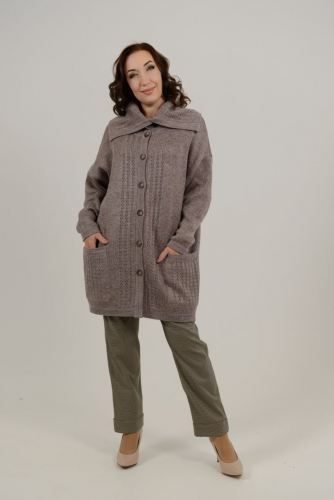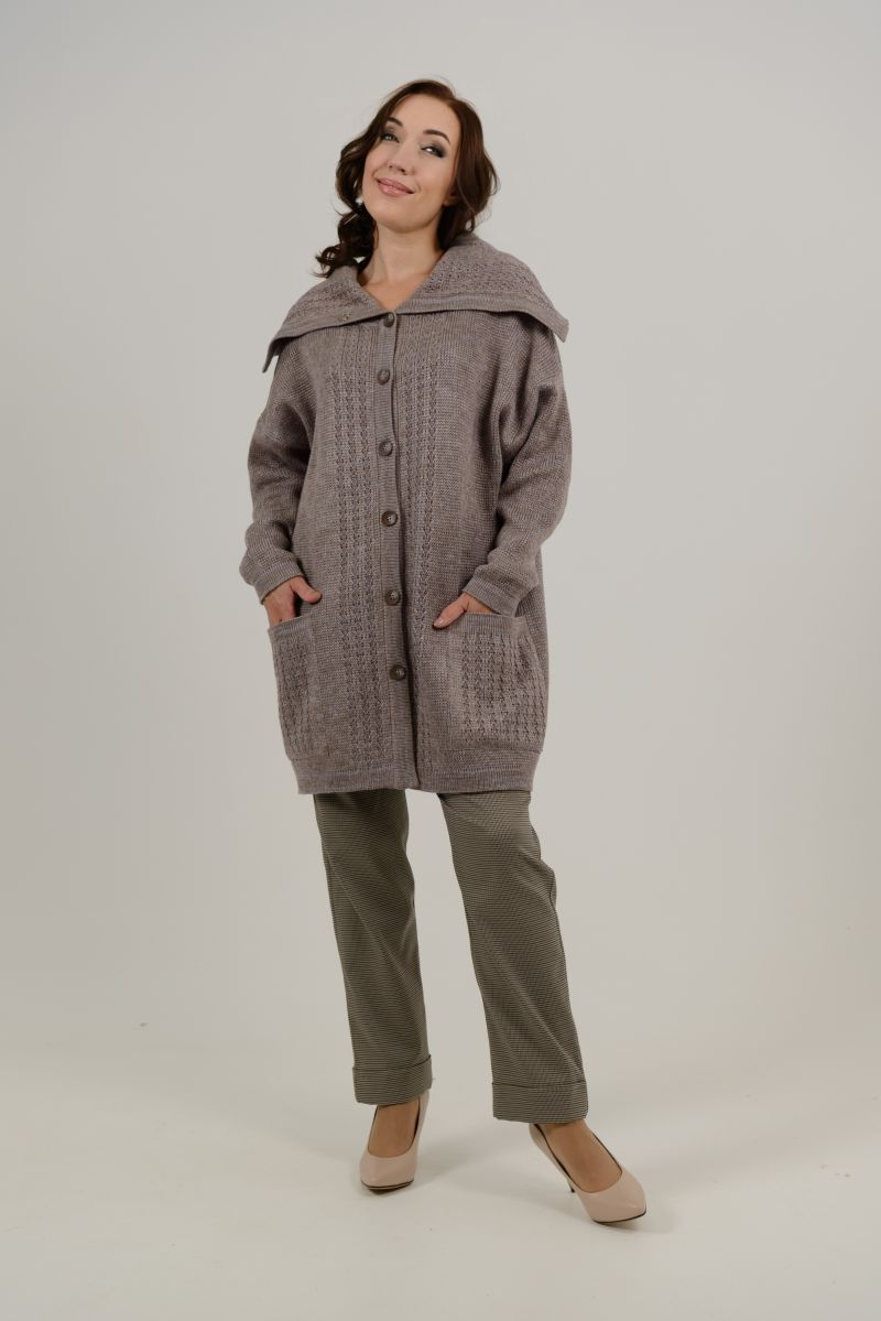 Описание: Жакет с застежкой на пуговицы, большой воротник, карманы, плотный трикотаж.