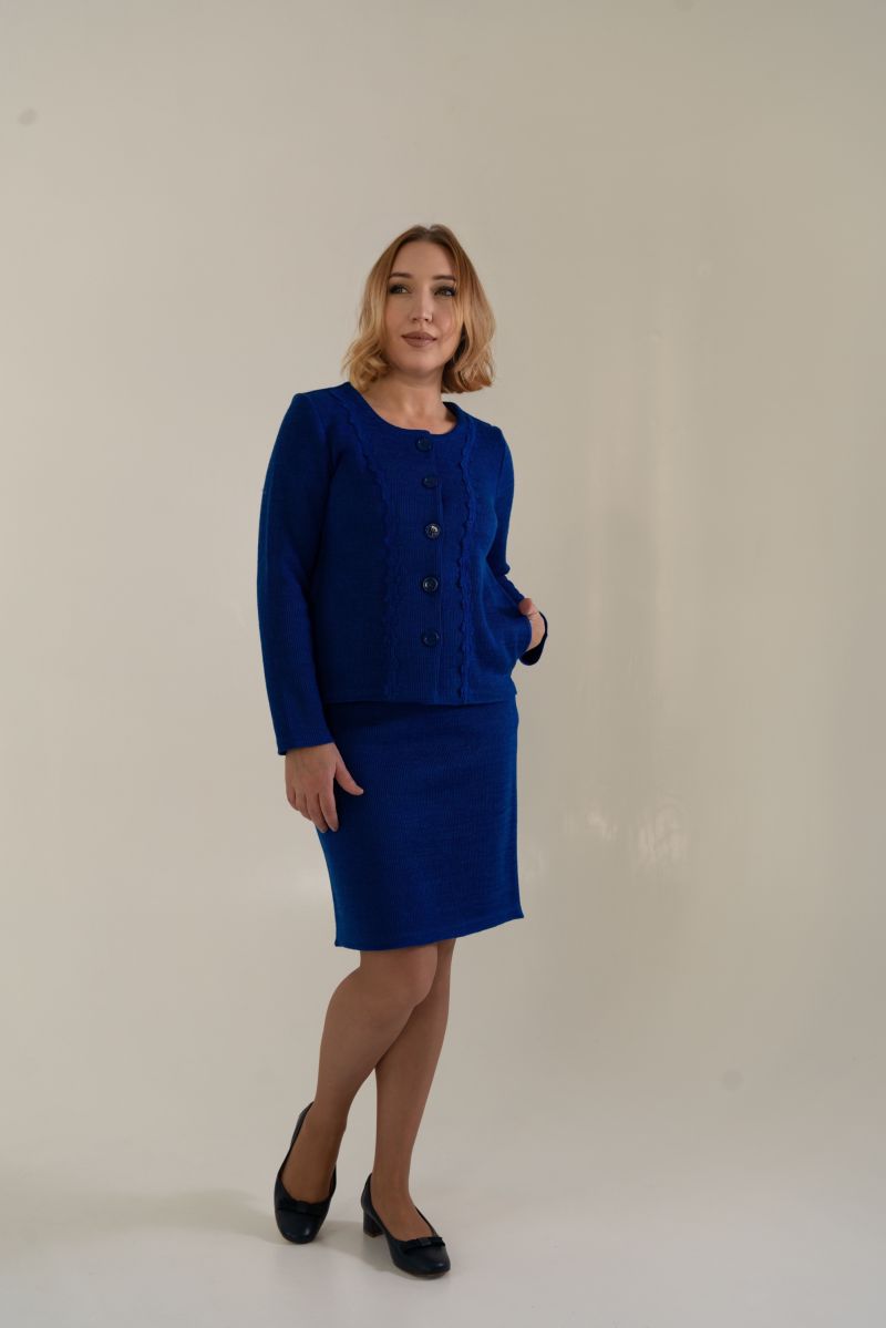 Описание: Жакет с длинным рукавом, застежка на пуговицы, карманы, отделка крючок, трикотаж,
