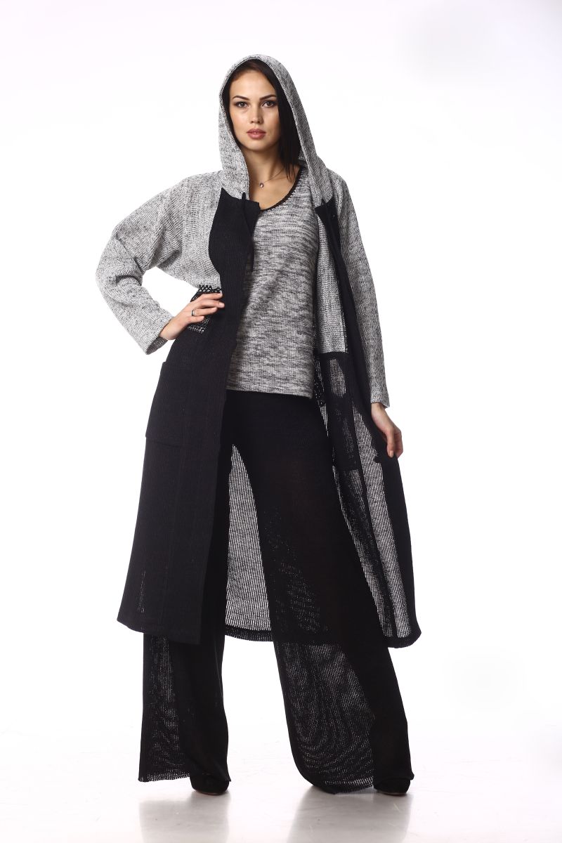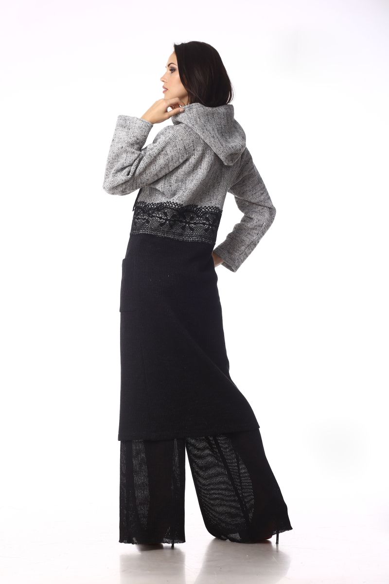 Описание: Жакет без подкладки, с капюшоном, карманы, кружево, застежка на пуговицы, трикотаж