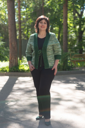 Описание: Жакет, застежка на пуговицы, отделка крючок, трикотаж