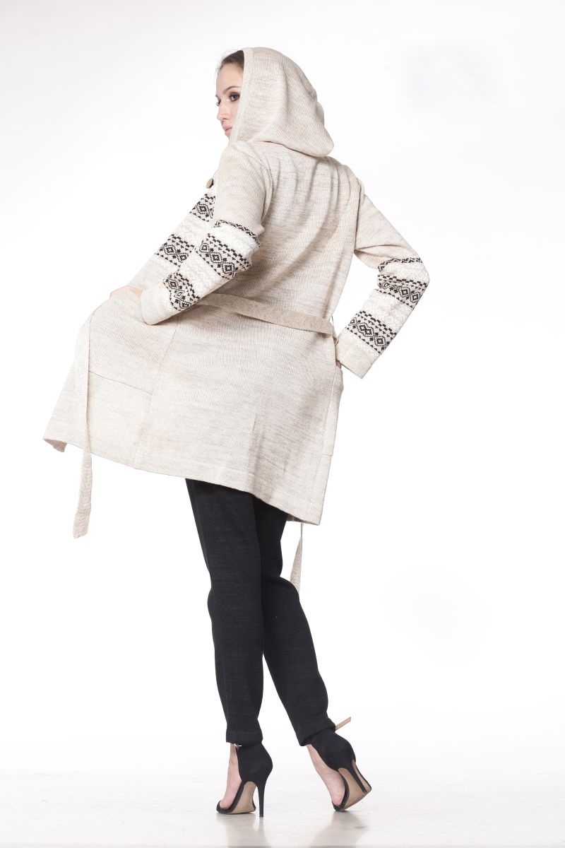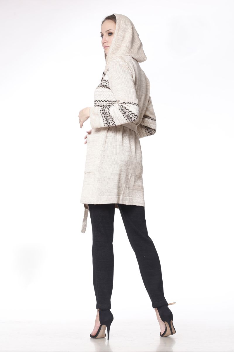 Описание: Жакет с капюшоном, застежка на пуговицы, с поясом и карманами, трикотаж.