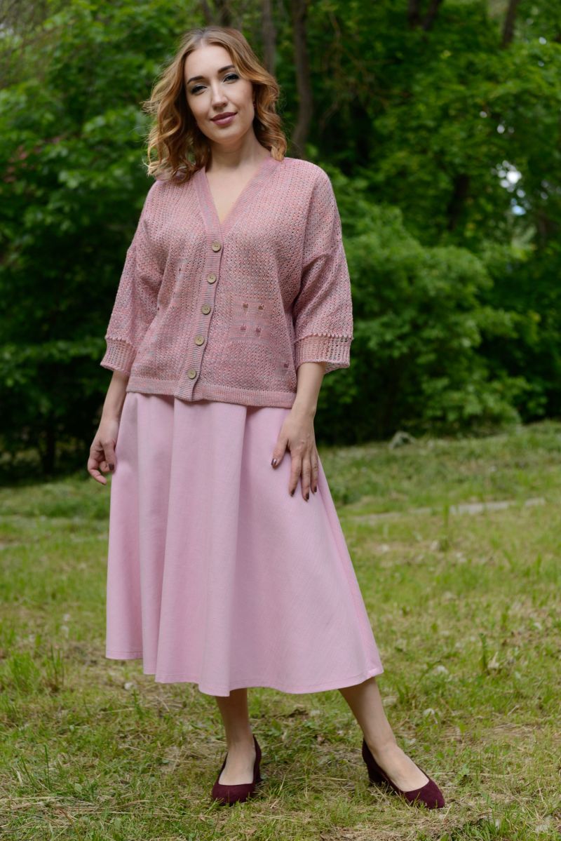 Описание: Жакет с застежкой на пуговицы, линия плеча спущена, трикотаж.