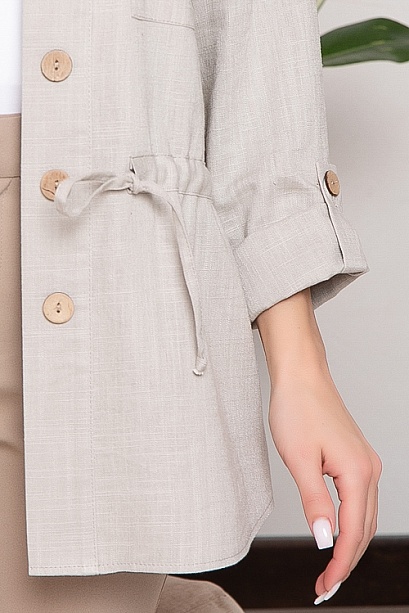 Жакет из комфортной льняной ткани прямого,свободного силуэта с центральной застежкой на пуговицы.По переду накладные карманы с клапанами.По талии регулируемая кулиска.