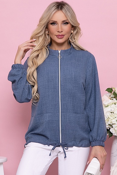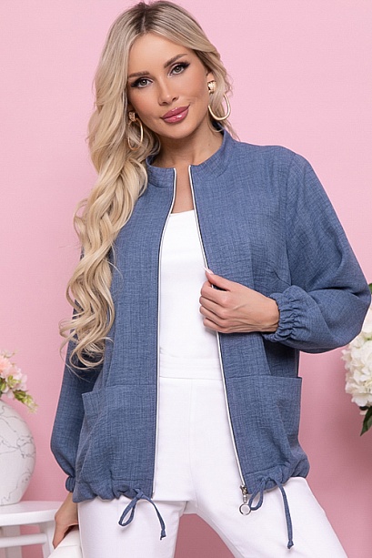 Жакет  свободного силуэта из комфортного,легкого  текстильного полотна,с центральной застежкой на молнию,с функциональными накладными карманами и кулиской по низу.