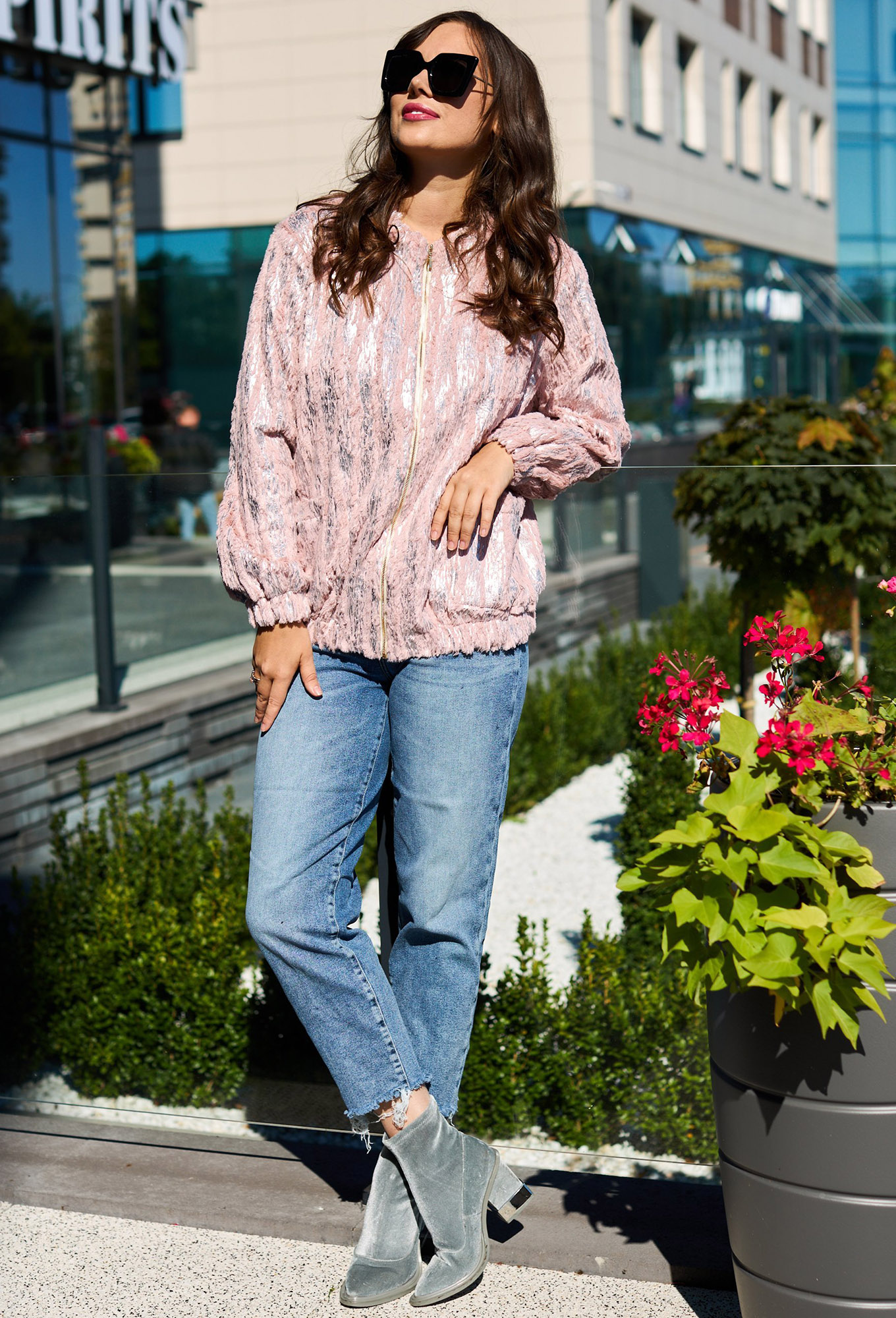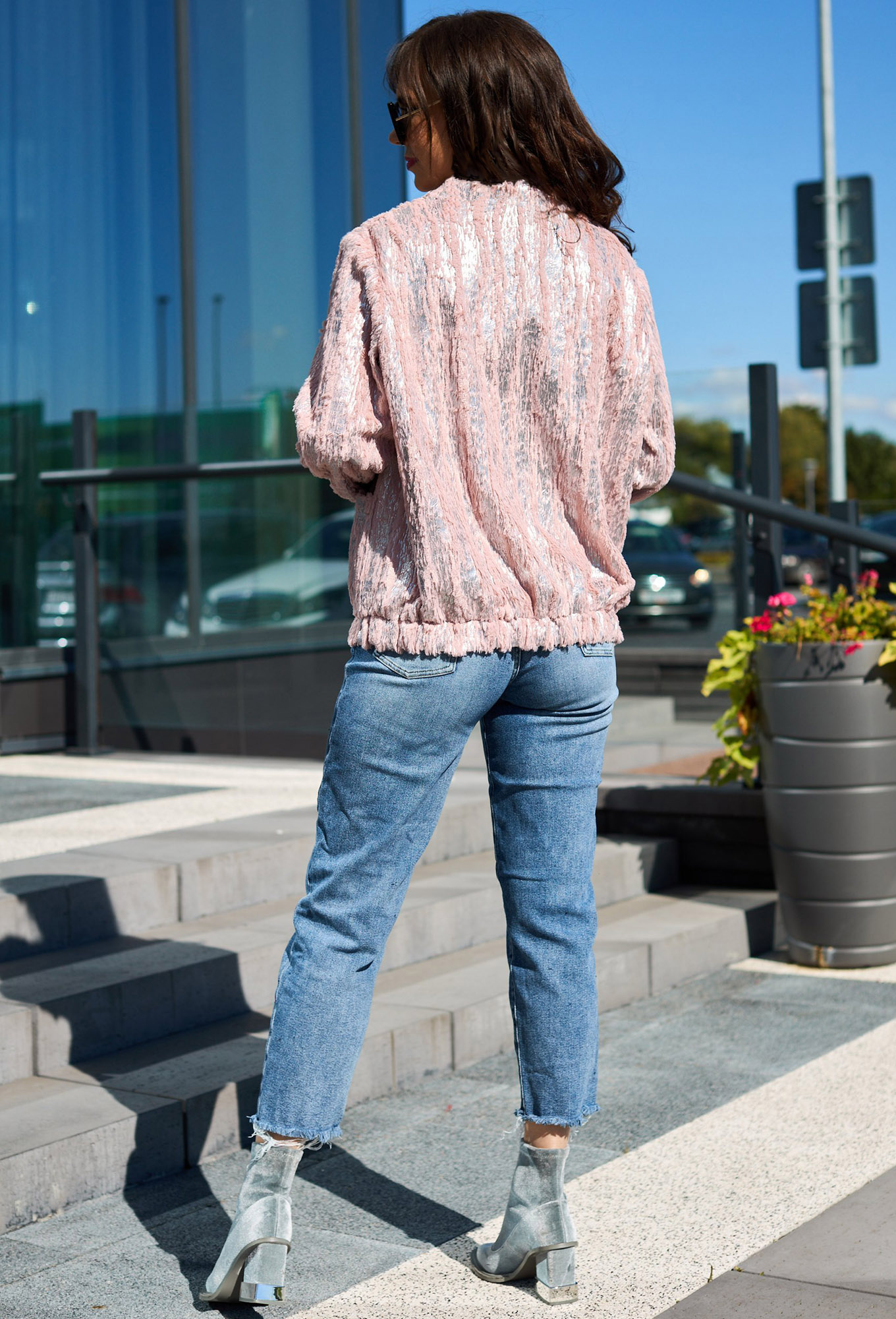 Жакет (куртка) женский из трикотажного полотна "мех с напылением", без подкладки. Модель прямого силуэта, застежка на молнию, по низу рукава и низу изделия идет манжет с резинкой. По полочке идут накладные карманы.