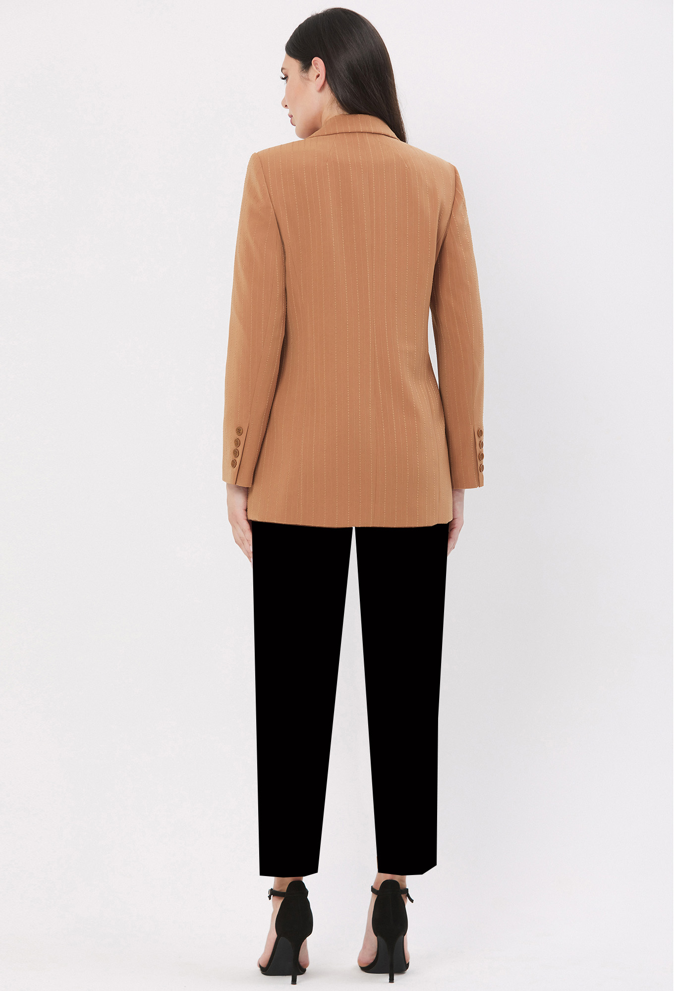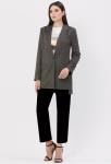 Жакет - комфортный двубортный жакет с застежкой на петли и пуговицы. Перед с карманами с рамками. Рукава втачные двушовные со шлицами и отделочными пуговицами. Воротник отложной с лацканами,на подкладке.