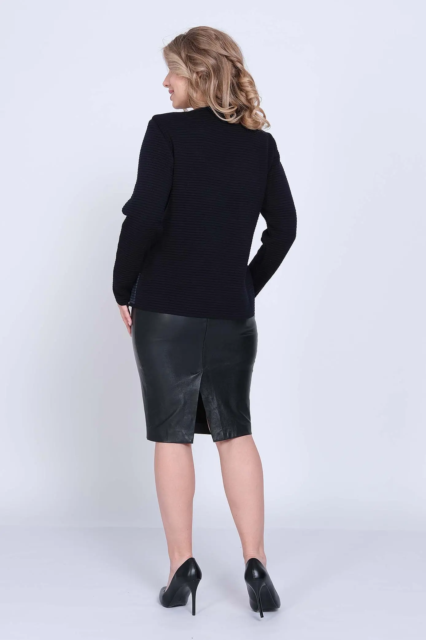Женский вязаный жакет полуприлегающего силуэта на молнии. Рукава втачные, длинные. Жакет выполнен из качественной пряжи с составом 30% хлопок 70% ПАН. Модель имеет функциональные прорезные карманы с листочкой. Жакет выполнен переплетением, образующим валики, за счет чего имеет комфортную посадку по фигуре и эффектный внешний вид. Расцветку модели составляют геометрические фигуры контрастных цветов по переду изделия. Цвет спинки и рукавов поддерживает основной тон жакета. Легкий, яркий, эффектный жакет поддержит и деловой образ, и праздничное настроение. Отлично сочетается с любым низом в комплекте. Модель классическая, праздничная и повседневная, абсолютно на любой случай в жизни. сине-голубой
