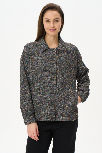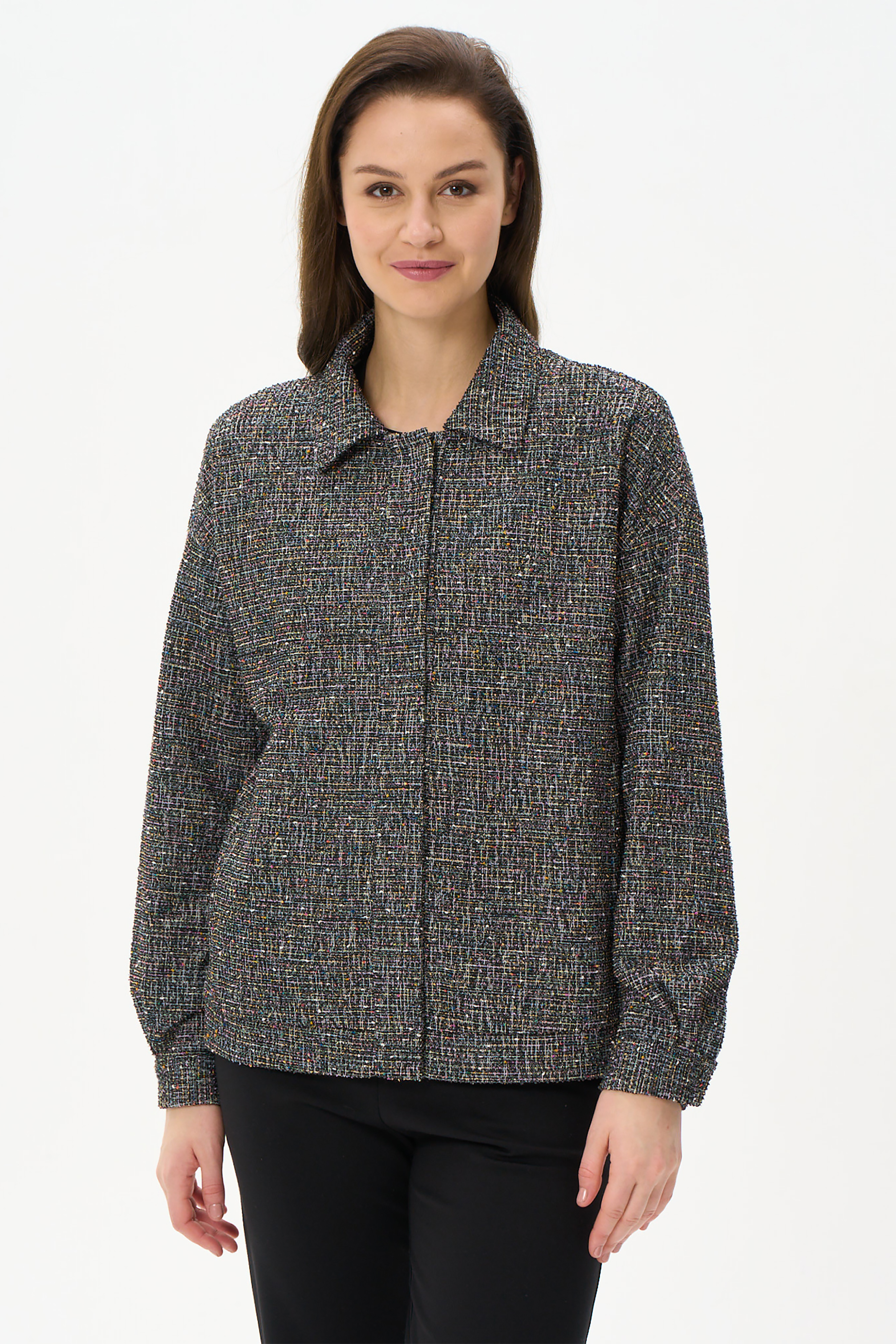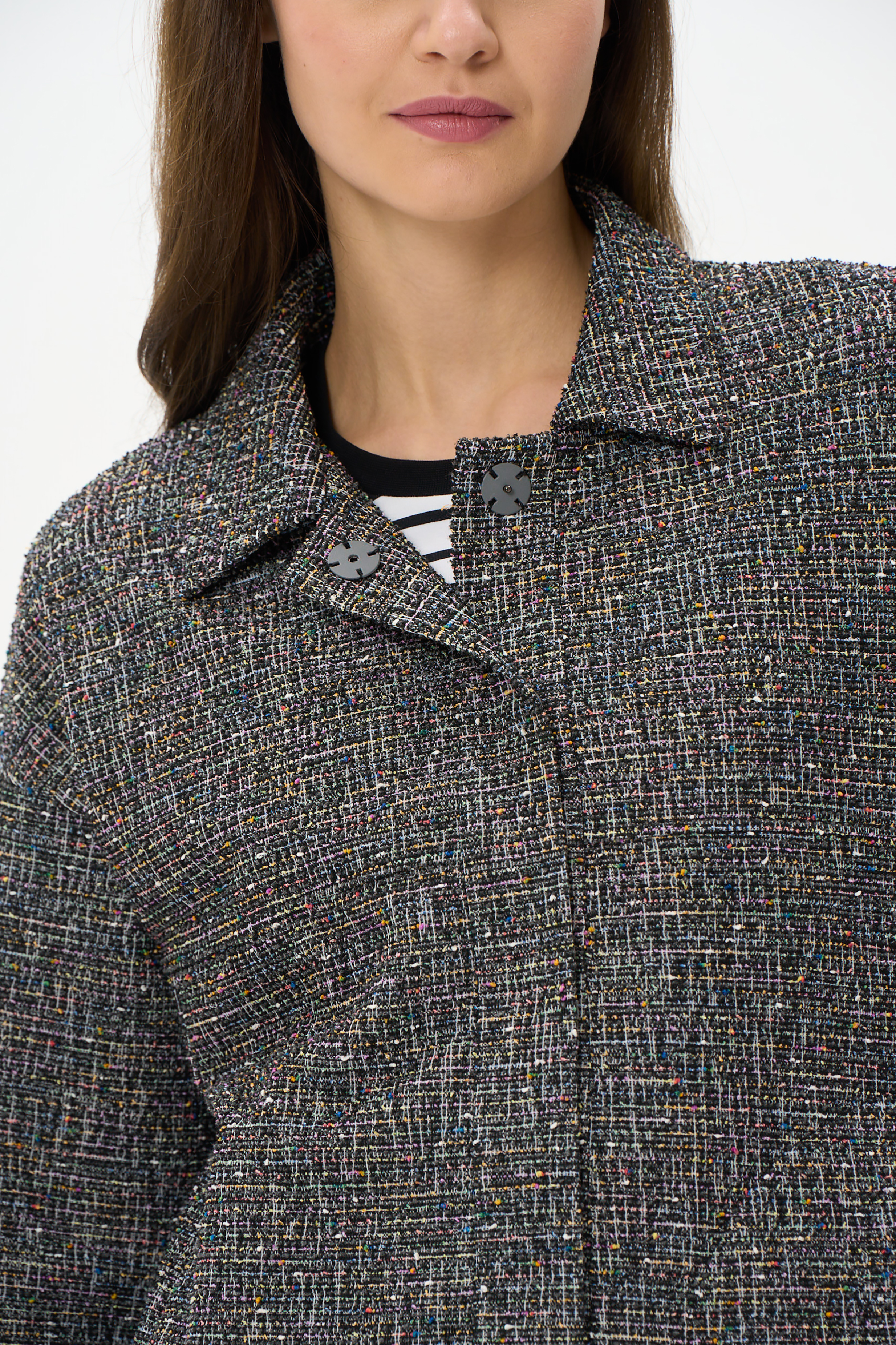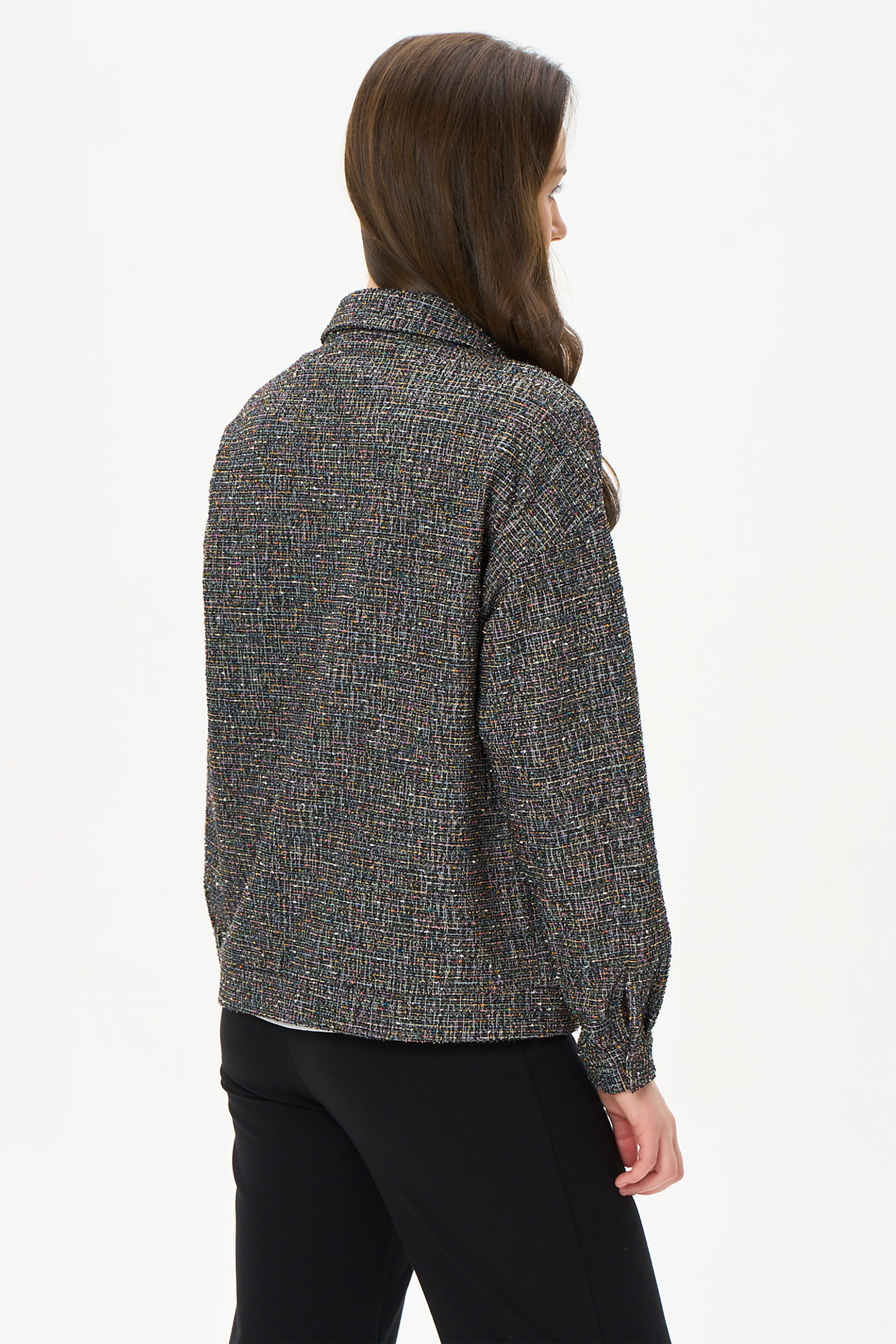Жаккардовый жакет выполнен из буклированного вискозного полотна под твид. Жакет свободного кроя со спущенным рукавом на манжете, достаточно объемный и удобный. Пришивные кнопки в цвет полотна создают впечатление потайной застежки. Рост модели на фото 178см