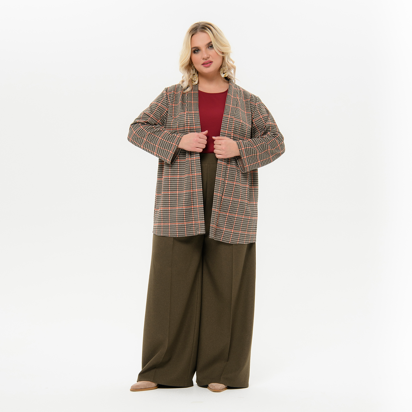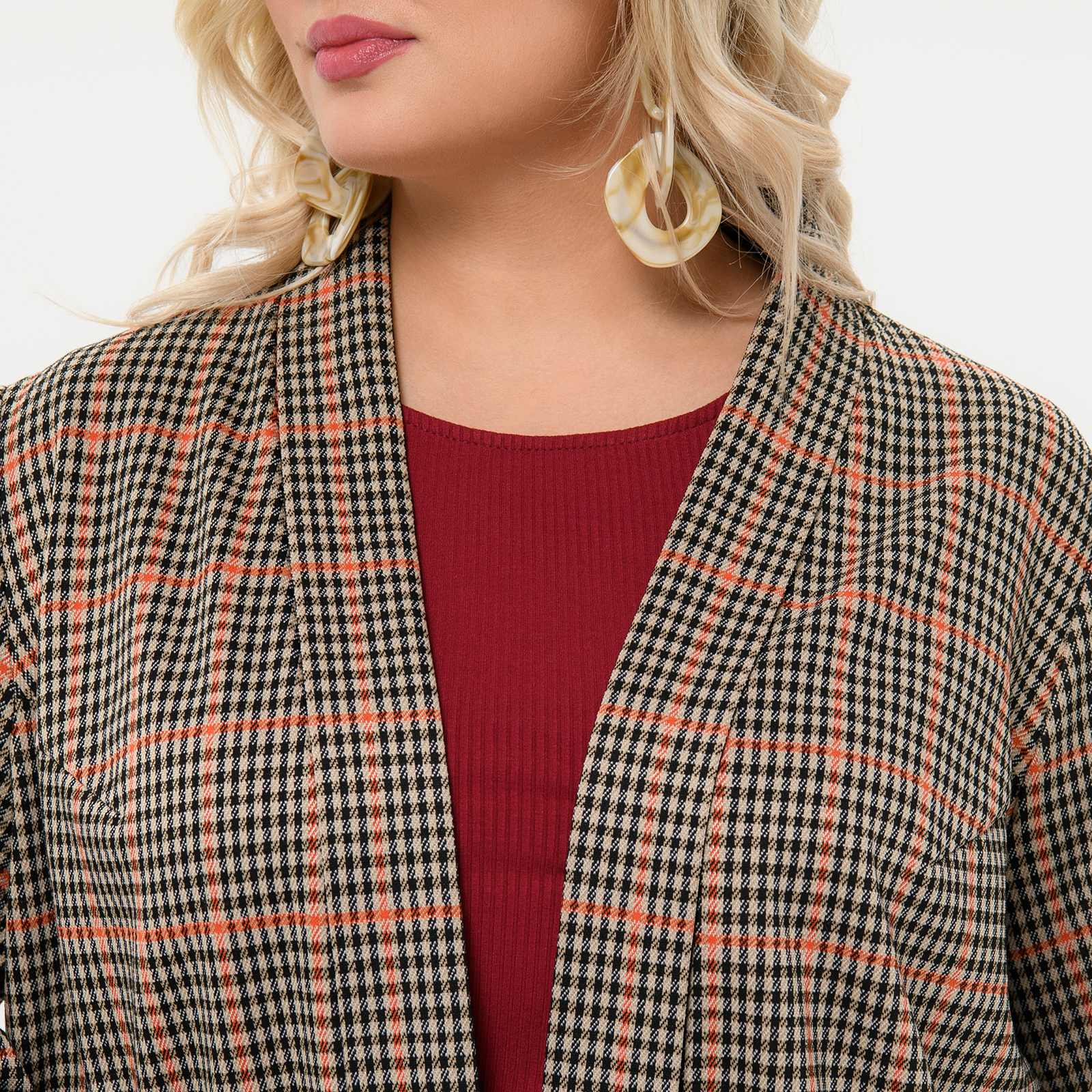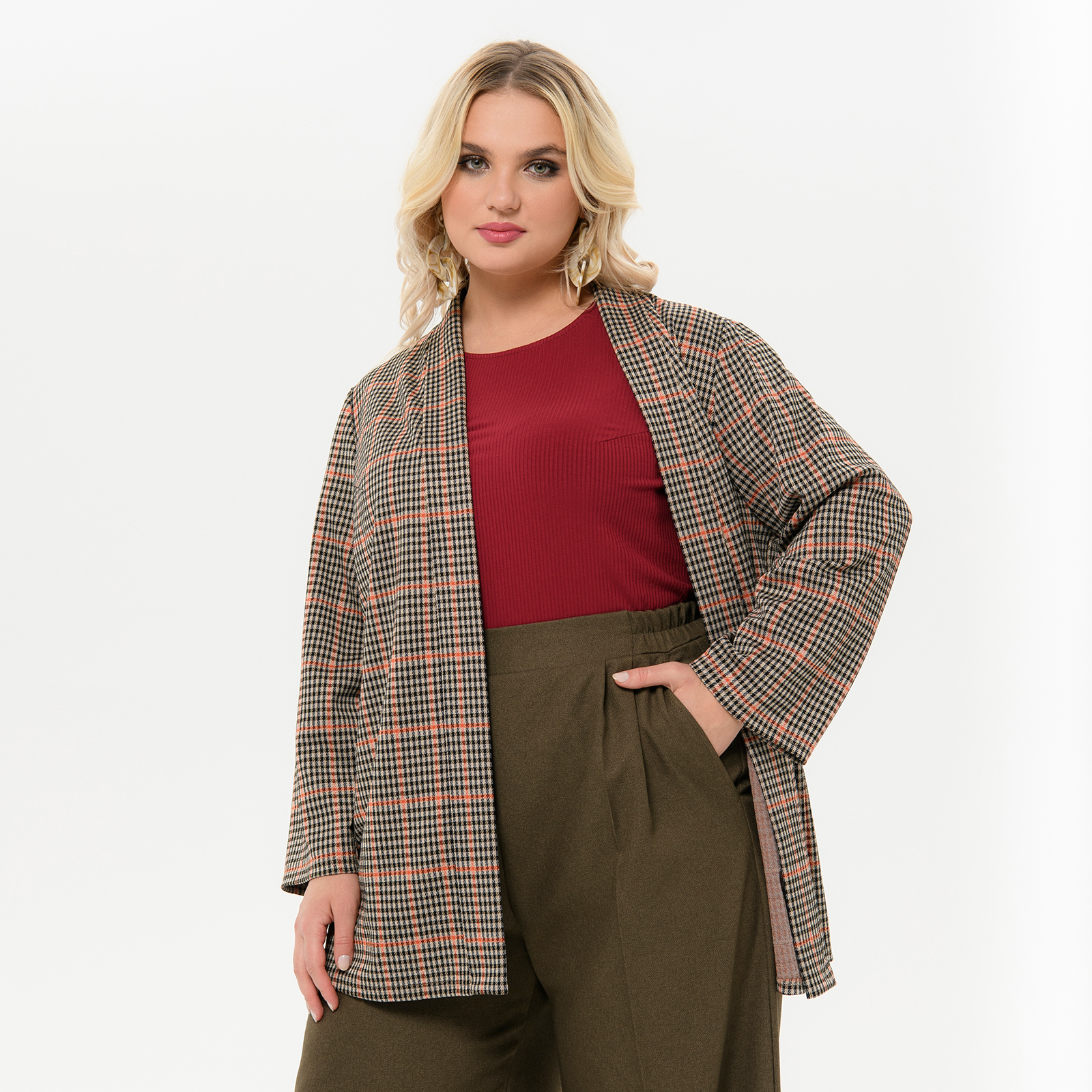 Жакет прямого силуэта из плотного трикотажного джерси в клетку. По бортам  притачные отвороты.