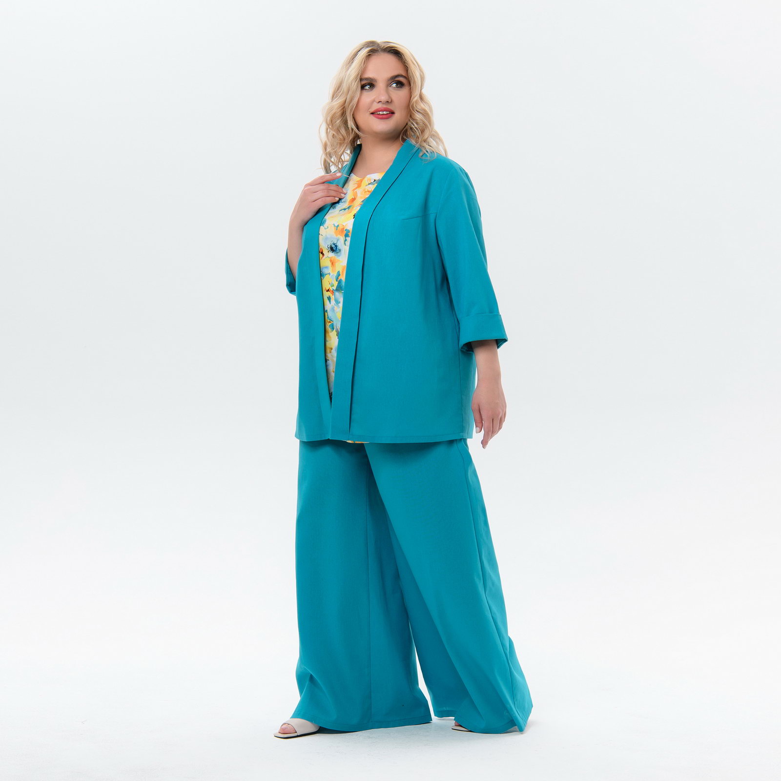 Жакет прямого силуэта из смесовой ткани, содержащей в составе лен и вискозу. По бортам и низу рукавов притачные отвороты.