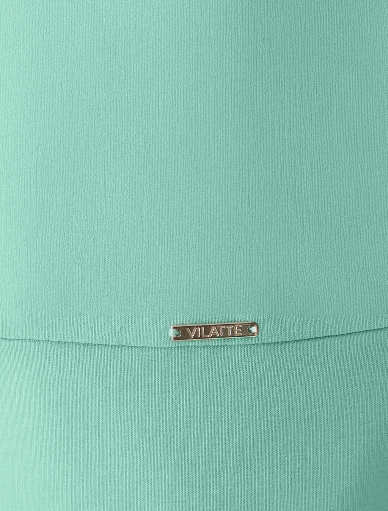 Жакет выполнен из футера двухнитки с эластаном. Модель без карманов с воротом стойка и застежкой на молнию серебристого цвета. Эластичный материал гарантирует комфорт и формоустойчивость. Сочетается в костюме с брюками D44.138, D44.139 и шортами D48.008. Изделие дополнено металлическим логотипом бренда. мятный