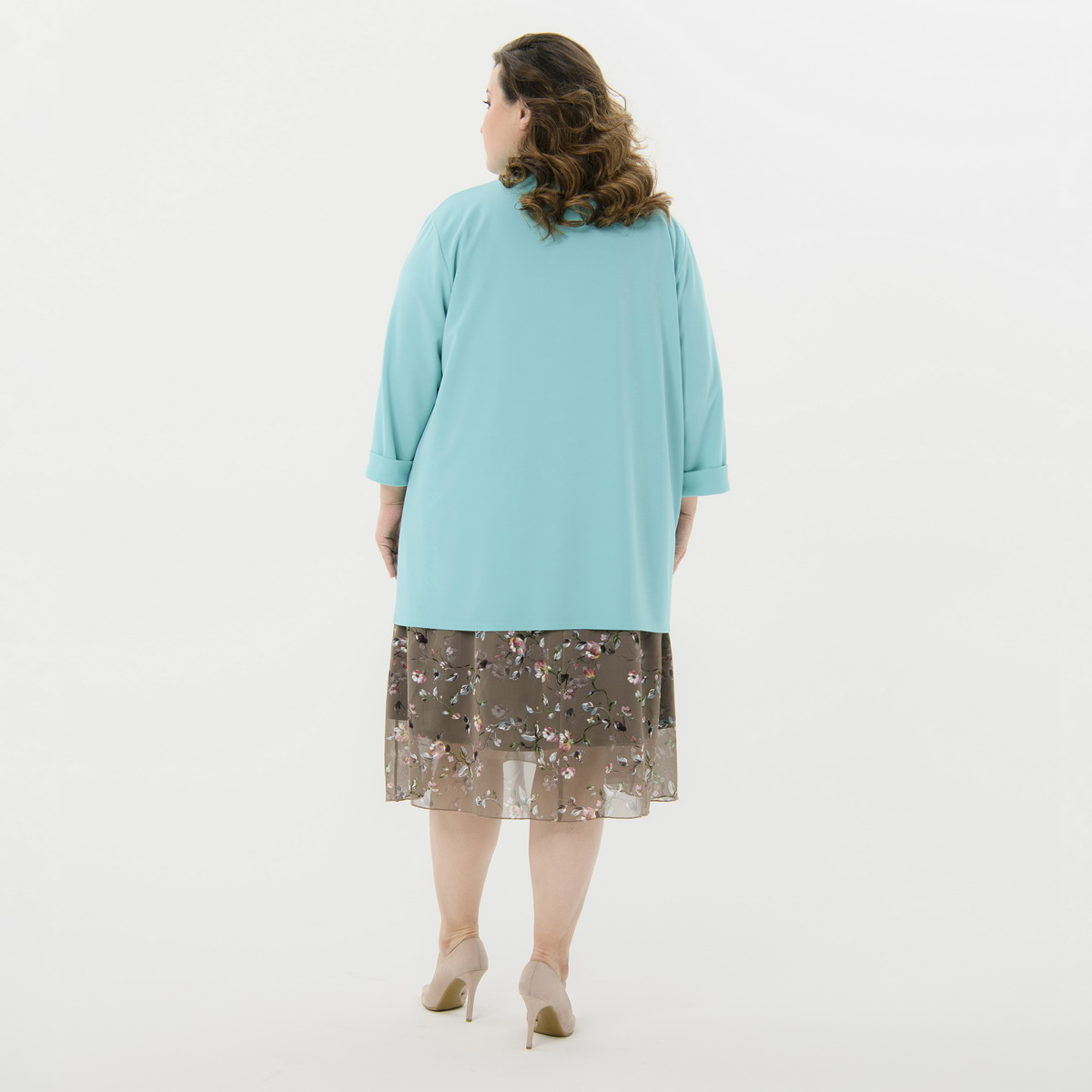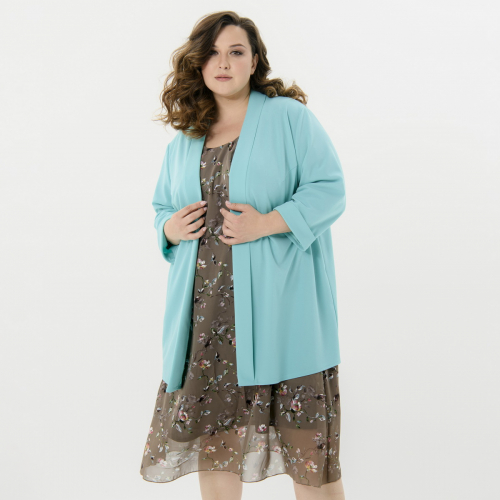Жакет прямого силуэта. Рукав 3/4. По бортам и низу рукавов притачные отвороты.