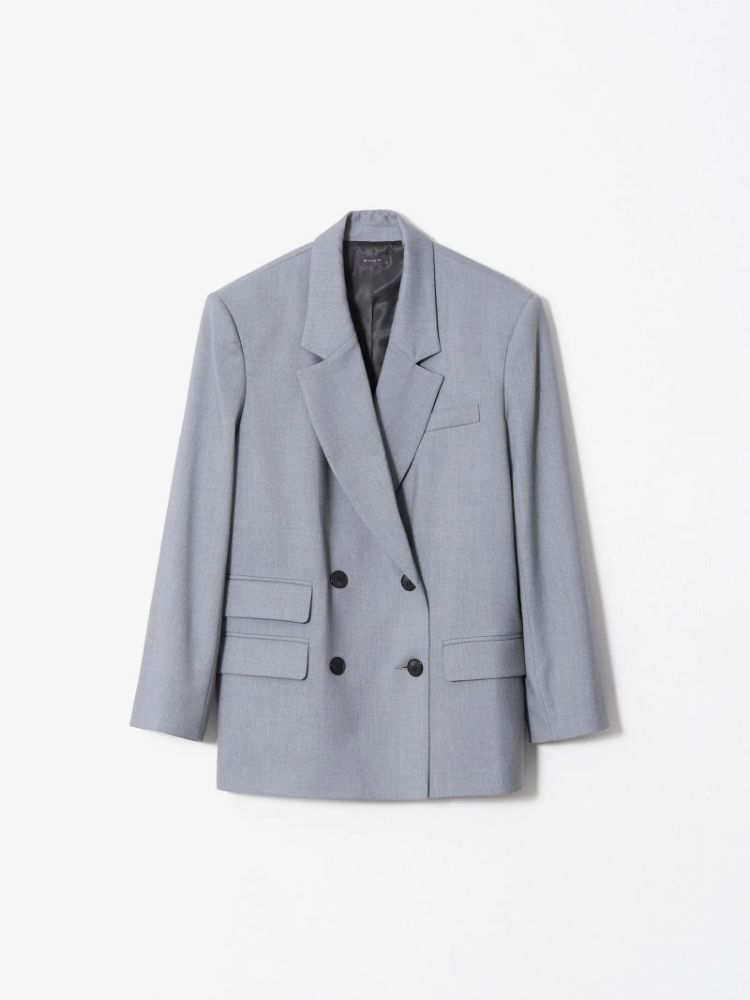 Двубортный жакет в актуальном оттенке серого. Отлично подойдёт для образов в офис и не только. Фальш-карманы асимметричного расположения с элегантными клапанами делают образ трендовым, не выходя за рамки офисного стиля. Модная асимметрия также выдержана в крое и в оформлении воротника. Удлинённая модель полуприталенного кроя садится на любую фигуру. Жакет составит отличное сочетание с брюками из комплекта. Изделие изготовлено из материала с высоким содержанием вискозы, на подкладке