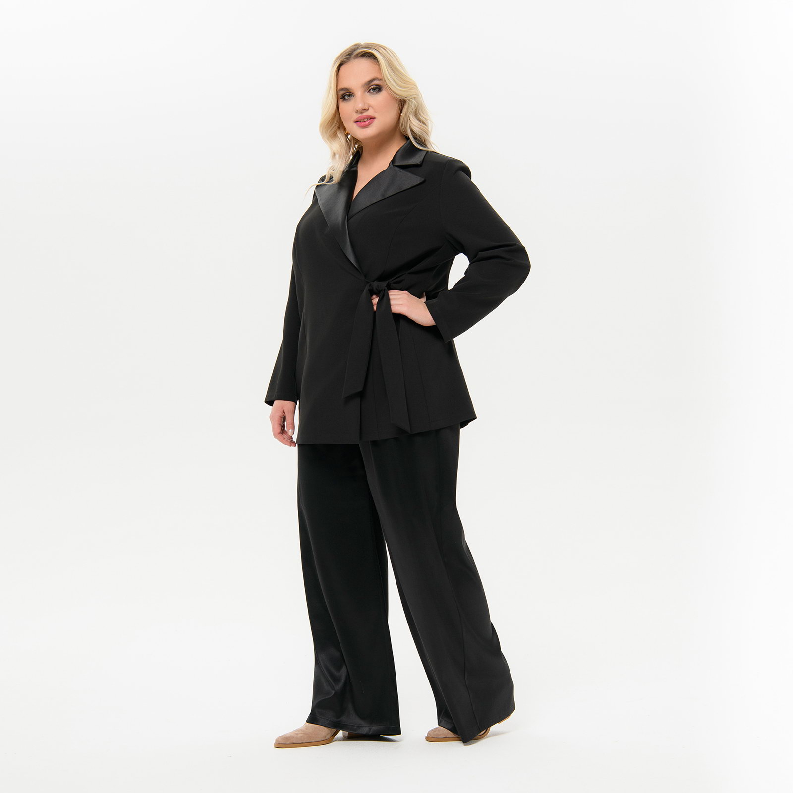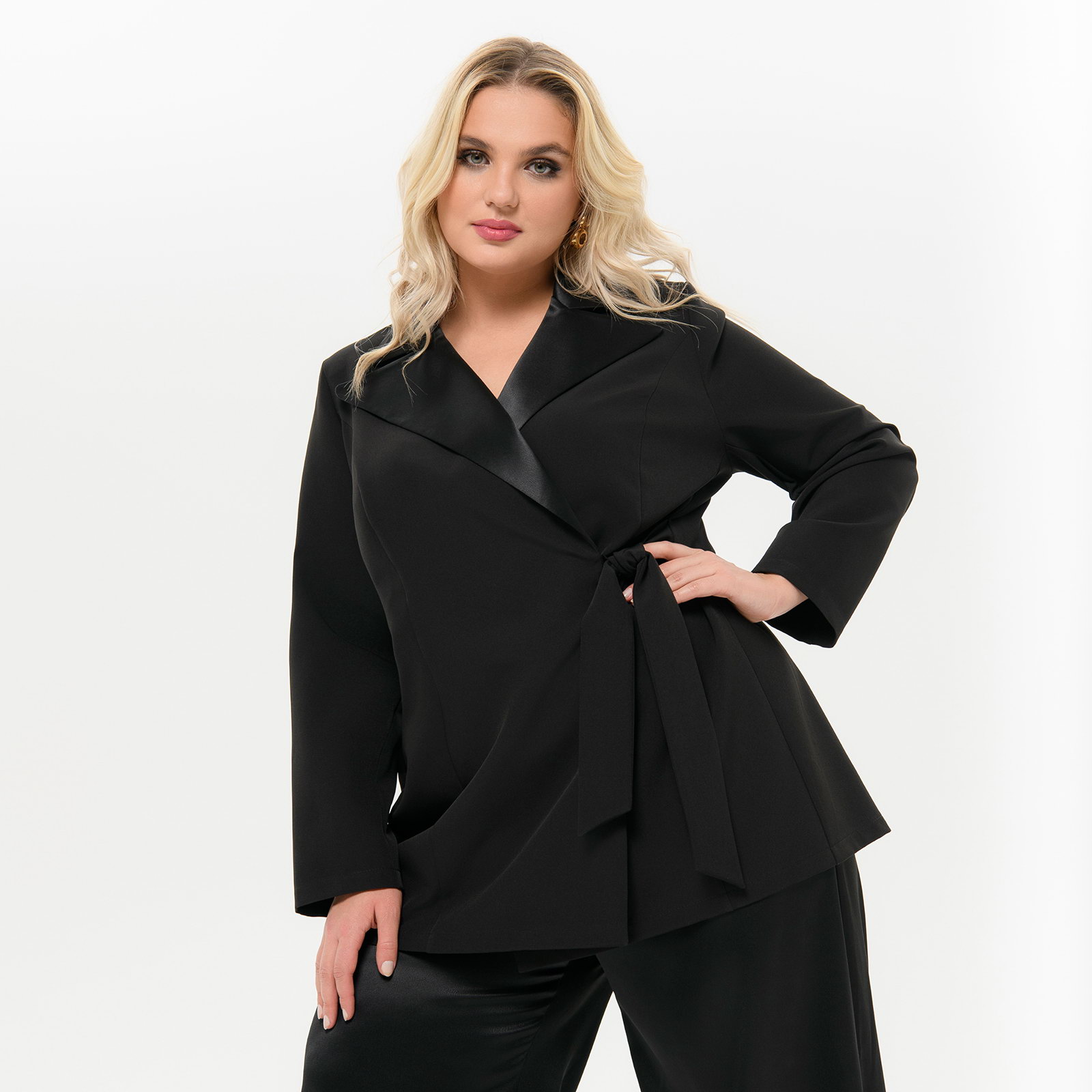 Жакет завязывается на пояс, одна часть которого втачана в правый борт, вторая в левый боковой шов.