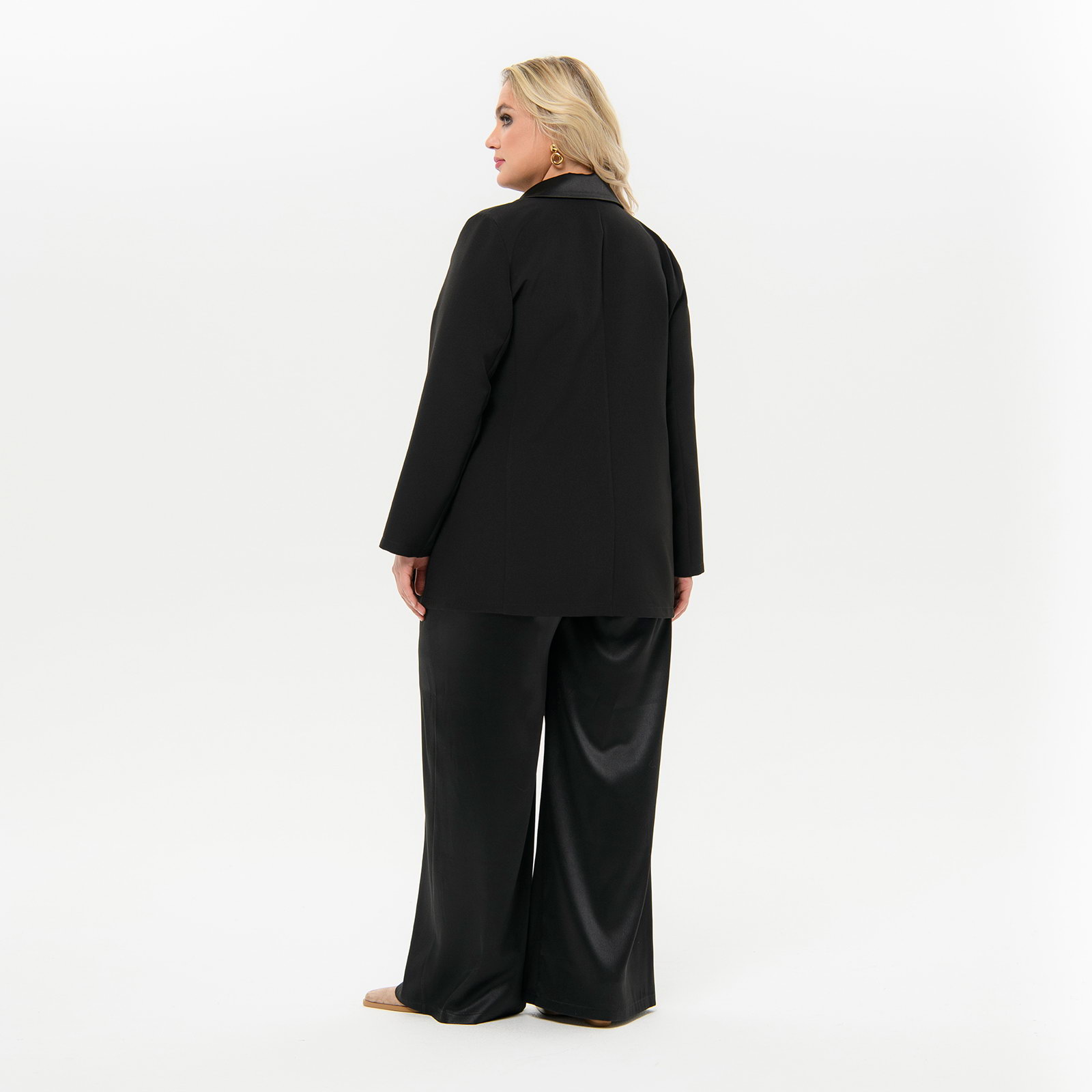 Элегантный жакет из костюмной ткани. Модель прямого силуэта с воротником пиджачного типа и длинными рукавами.