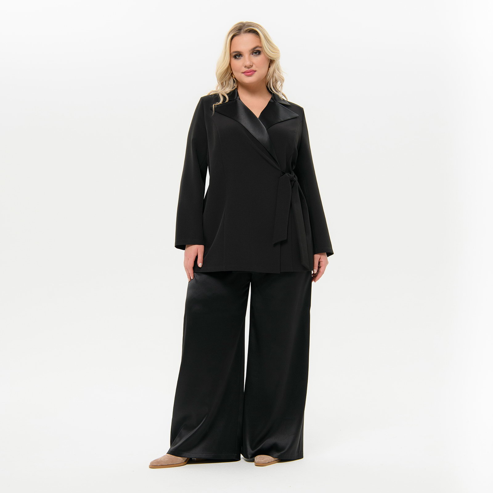 Лацканы и воротник выполнены из отделочного атласа.