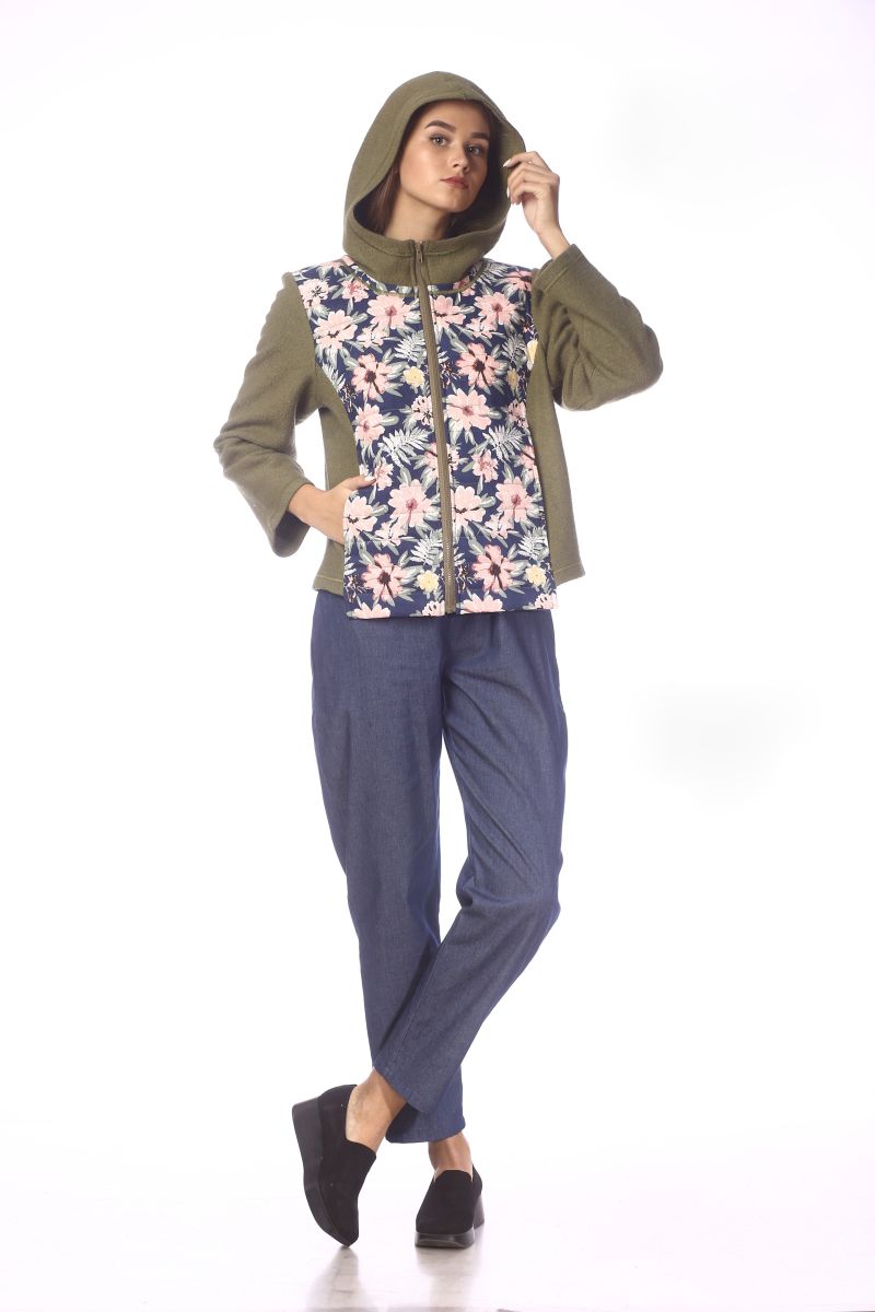 Описание: Жакет с капюшоном, без подкладки, центральная часть спереди лен стеганая на синтепоне, карманы, молния,
