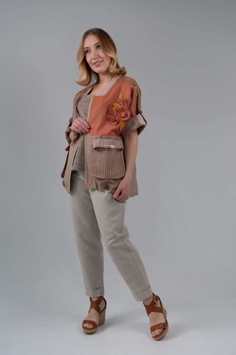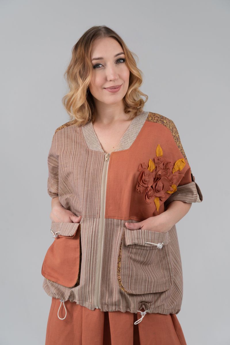 Описание: Жакет без подкладки, на молнии, карманы, отделка, воротник трикотаж