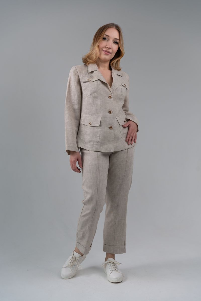 Описание: Жакет без подкладки, застежка на пуговицы, карманы, с рельефами.