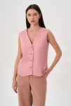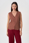 Жилет прекрасного качества, заказала на 2 размера больше, боялась усадки после стирки, сидит неплохо свободненько, держит форму, проймы не очень большие, можно даже на голое тело носить и не короткий, на 163 как на модели.