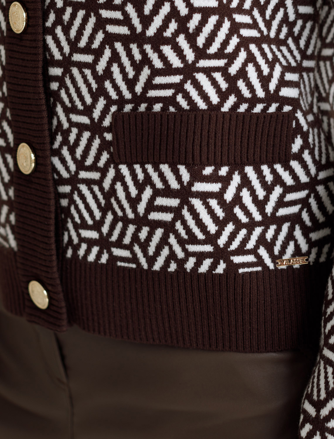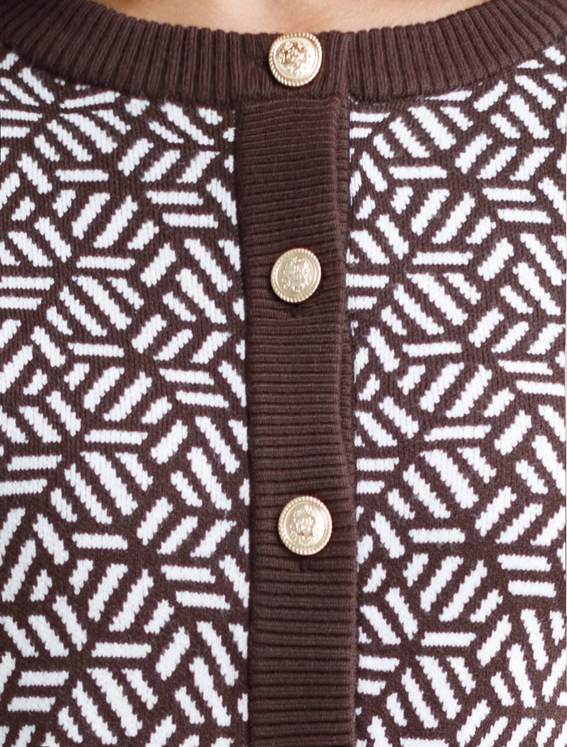 Жакет жаккардовой вязки выполнен из нежной пряжи на основе вискозы с добавлением кашемира. Модель с круглым вырезом и золотистой фурнитурой выглядит дорого и роскошно, приятно ощущается на теле и поддерживает комфортный микроклимат. Совет стилиста: сочетайте с однотонными брюками, юбкой, платьем или джинсами. Можно использовать в комплекте total-look с D39.362 и с платьем D32.110 кофейный