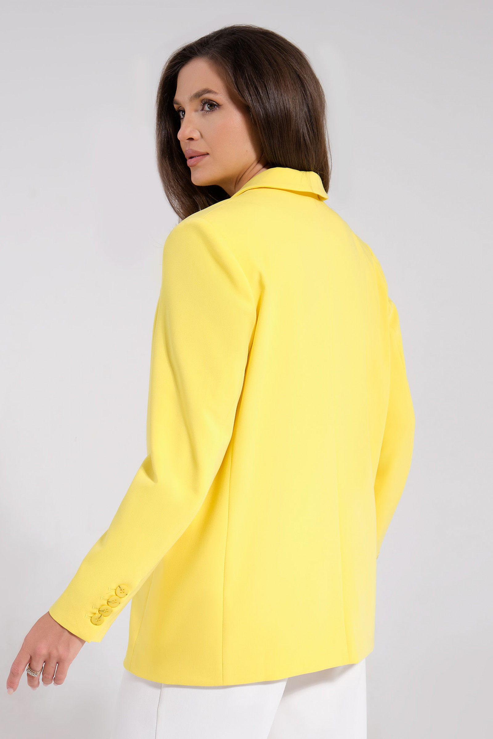 Удлиненный жакет прекрасно дополнит брюки в деловом стиле, уже имеющиеся в вашем арсенале модной одежды. Жакет женский оверсайз имеет достаточно свободный крой, не подразумевает посадку по фигуре. Вы можете носить деловой жакет как самодостаточный элемент, поддевая под низ нижнее белье, топ, однотонную футболку, майку. Двубортный жакет женский – отличный вариант. Поэтому он хорошо смотрится с узкими и широкими штанами. Выполнен жакет из трикотажа, хорошо держит форму. Вы можете купить черный классический пиджак по выгодной цене в размерах 42-50.