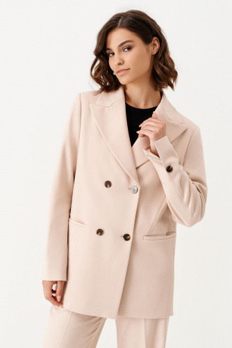 Жакет женский из смесовой ткани для повседневной носки прямого силуэта. Застежка в жакете двубортная на две обметанные петли и две пуговицы. Перед имеет два кармана с листочкой, а также боковую часть переда, идущую от проймы до кармана. На переде располагается два рельефа идущих от проймы до линии низа изделия. Спинка со средним швом и с шлицей в шве по низу изделия, а также рельефы, идущие от проймы до линии низа изделия. Горловина обработана пиджачным воротником. Рукава втачные двухшовные, по низу шлицы имеется шлица с застежкой на одну обметанную петлю и одну пуговицу. Стильный и практичный жакет на любой выход, в нем вы будете чувствовать себя уверенней, а главное очень комфортно.