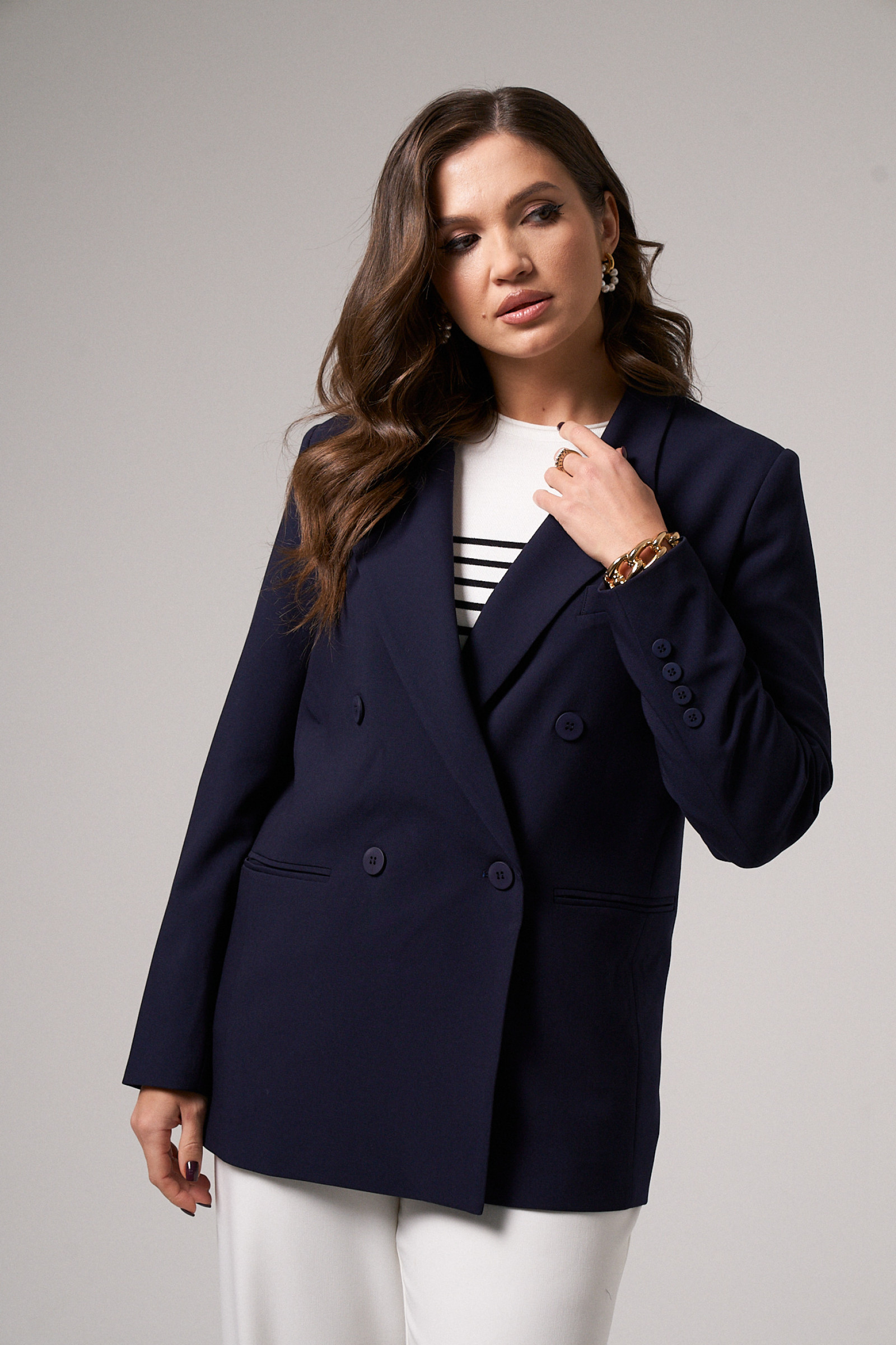 Жакет полуприлегающего силуэта из поливискозной ткани для повседневной носки. Изделие на поливискозной подкладке. Воротник отложной. По переду прорезные карманы в рамку. Рукав длинный втачной. По спинке средний шов. Длина изделия классическая.