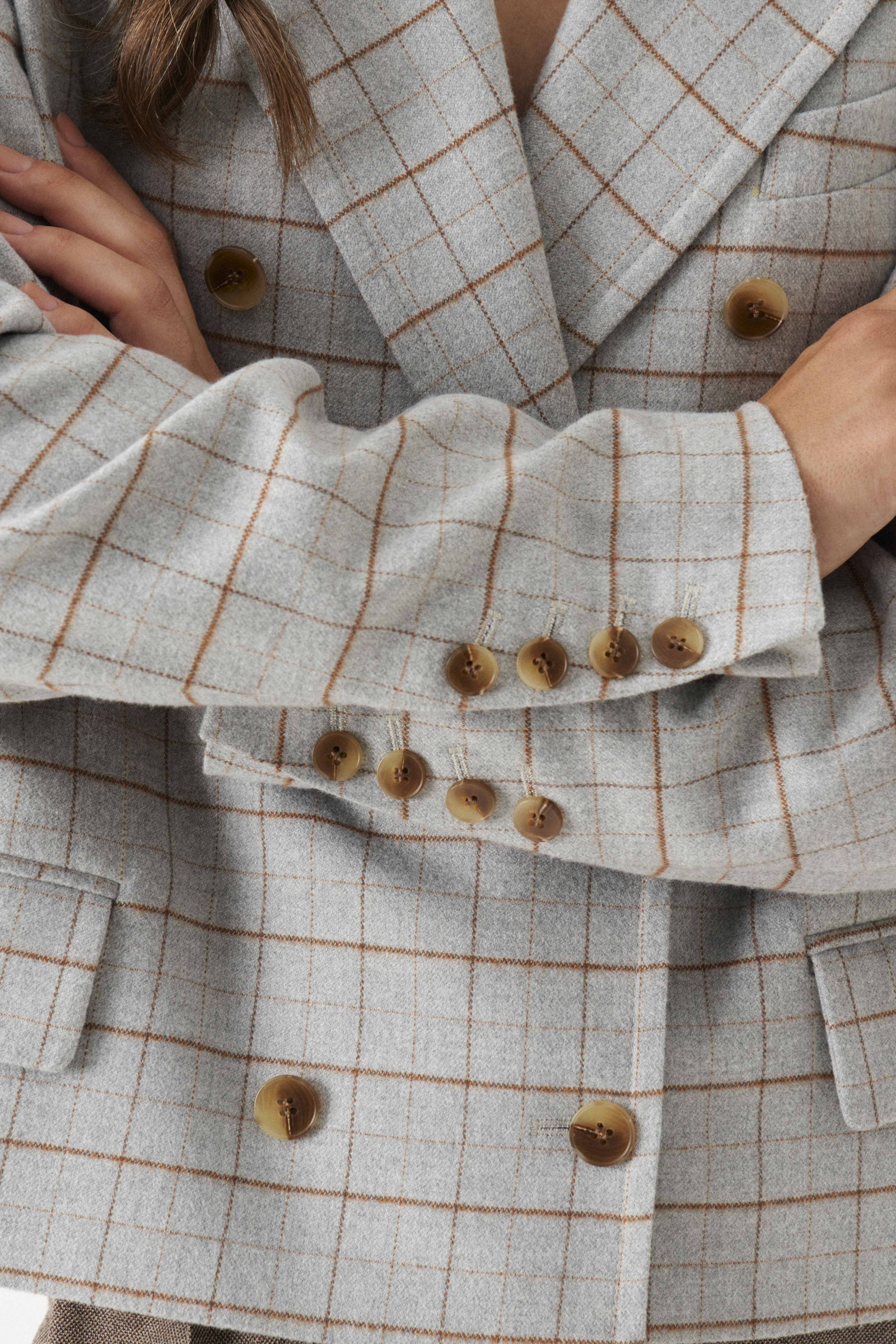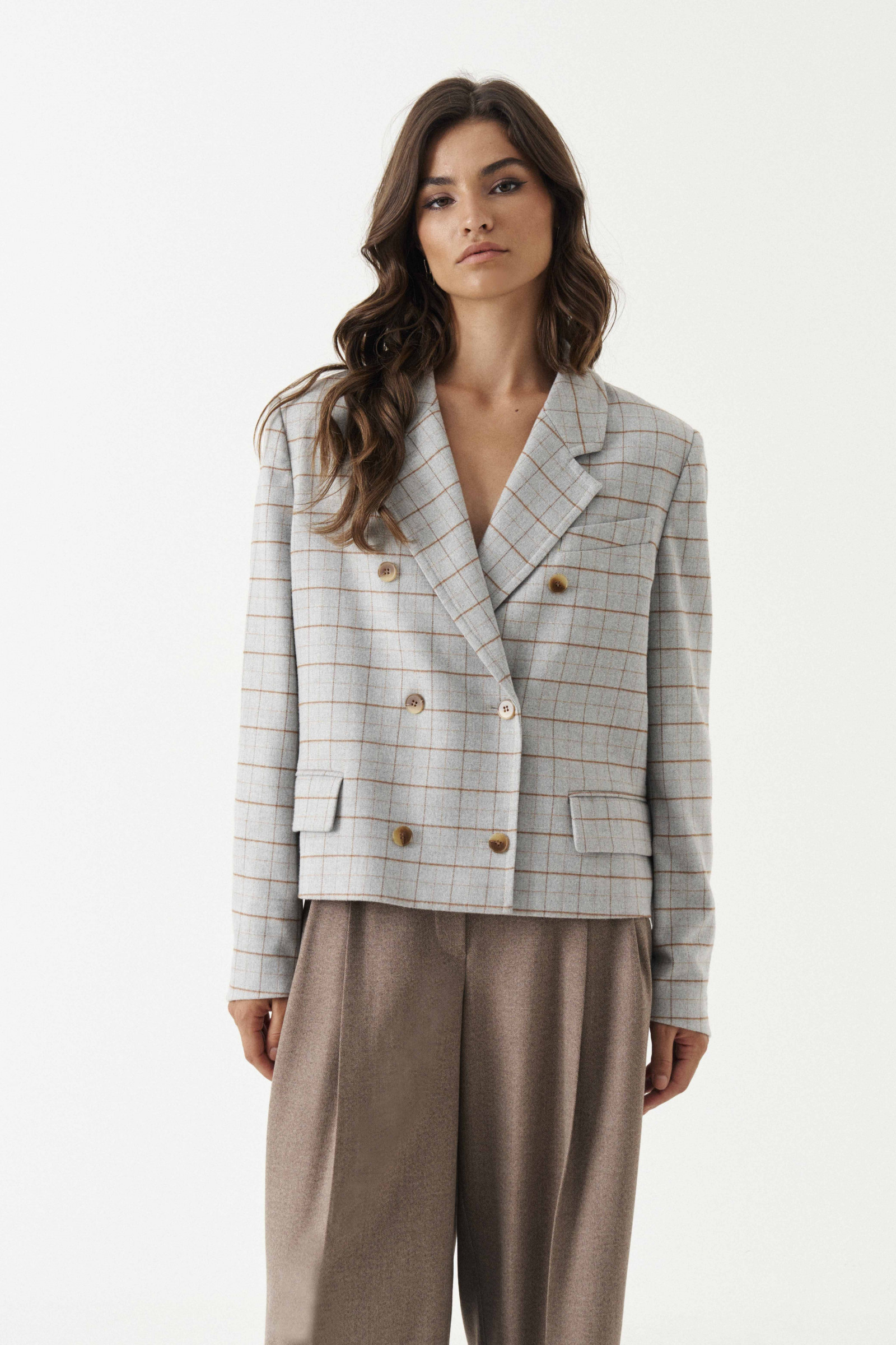 Жакет женский из смесовой ткани в клетку для повседневной носки. Жакет полуприлегающего силуэта. Жакет двубортный, застежка на две обметанные петли и две пуговицы. Перед имеет два вертикальных рельефа, идущих от проймы до низа изделия, а также на переде располагается нагрудный карман с листочкой. По переду имеется карман с клапаном и двумя обтачками. Спинка со средним швом и с двумя рельефами, идущими от проймы до линии низа изделия. Горловина обработана пиджачным воротником. Рукава двухшовные с шлицей по низу рукава, на шлице имеются четыре пуговицы. Жакет на поливискозной подкладке Данное изделие станет отличным дополнением к любому гардеробу. И обязательно осчастливит его обладательницу своим прекрасным фасоном.