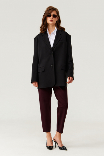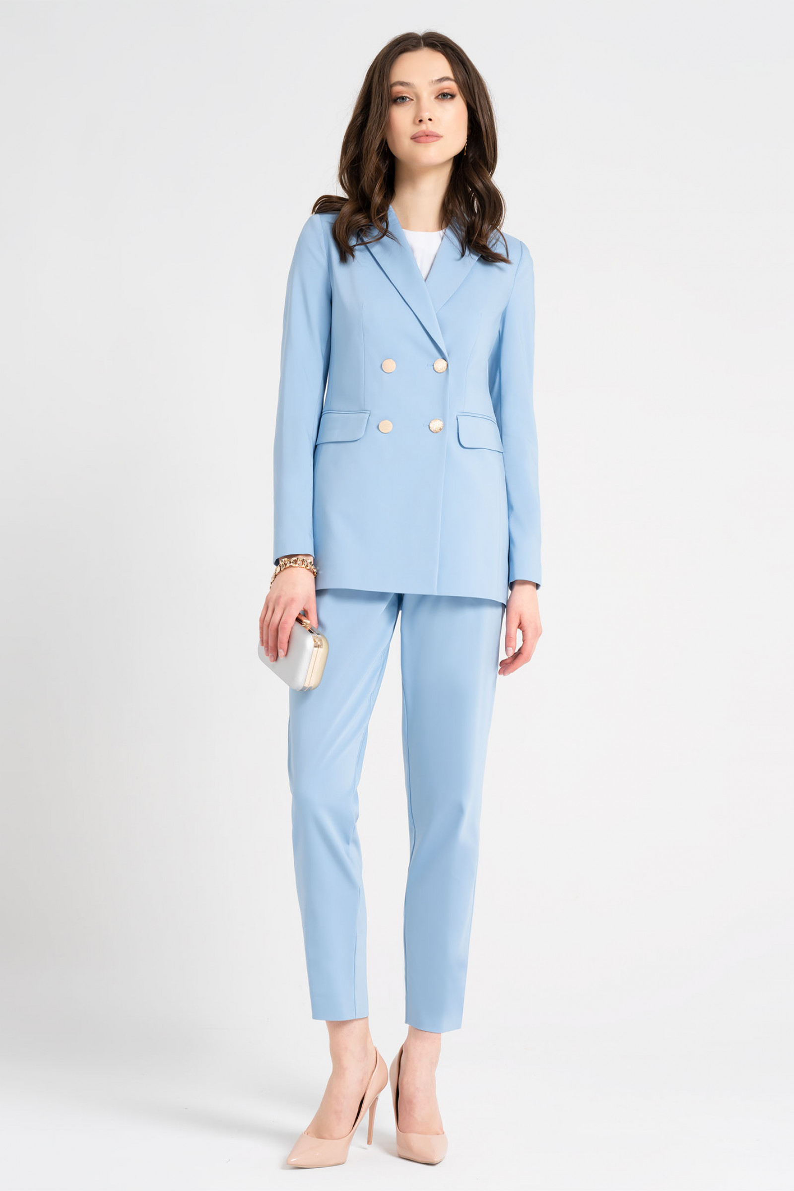 Модный двубортный жакет из хлопковой ткани. Жакет полуприлегающего силуэта с застежкой на петли и пуговицы. По переду и спинки имеются рельефы, которые обеспечивают отличную посадку по фигуре. Рукава длинные двухшовные, локтевой шов со шлицей с декоративными петлями и пуговицами. По переду карманы с клапаном. Только перед жакета на подкладки, что обеспечивает особый комфорт при носки. Такой классический жакет отлично сочетается как с классическими брюками, так и с джинсами, создавая самый модный лук нынешнего сезона.
