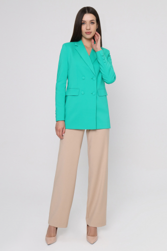 Удлиненный пиджак женский идеально дополнит повседневный кэжуал или деловой стиль. Двубортный отложной воротник формирует красивую линию декольте. Впереди трикотажный жакет женский застегивается на одну пуговицу. Его можно надеть поверх блузки, футболки, майки, сочетать с брюками, джинсами, легинсами, бриджами. Жакет с рукавом ¾ подарят вам комфорт в пасмурный день или летний вечер. Будет актуален на торжественном мероприятии и обычной прогулке. Вы можете купить женский летний жакет в размерах 50-58.