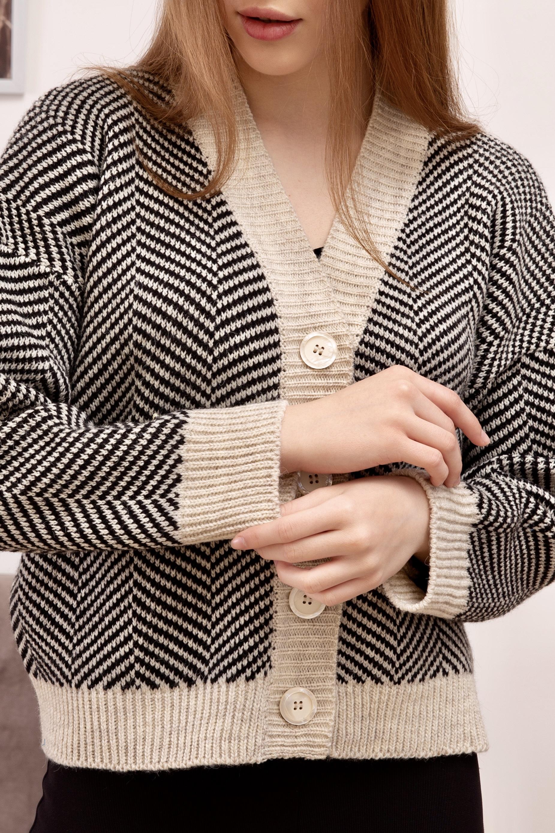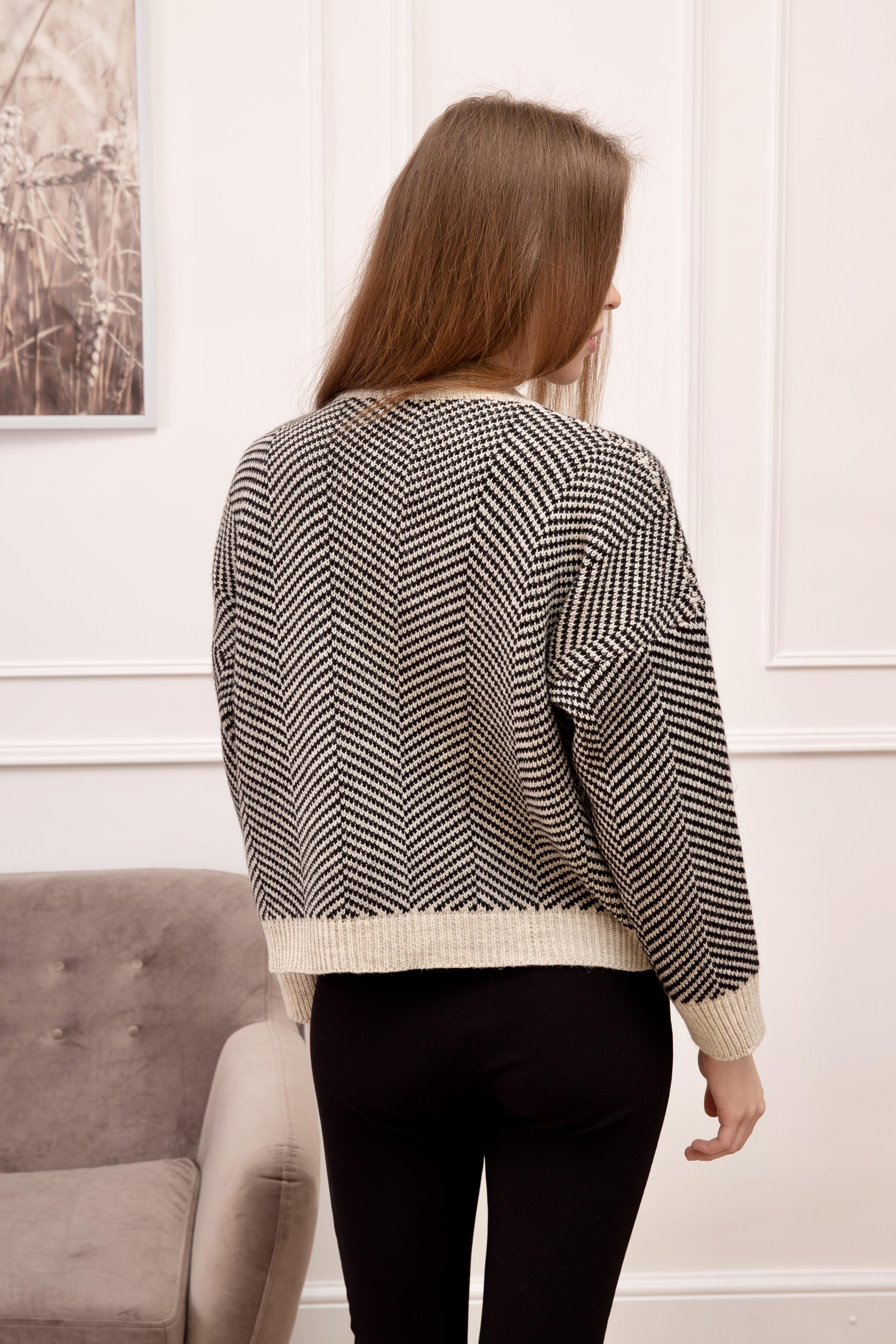 Стильный жакет Елка выполнен из качественного материала, с ярким геометрическим рисунком. Ткань мягкая и приятная на ощупь, и в то же время держит форму. Жакет с длинными рукавами, что позволяет удобно сочетать с любой верхней одеждой и классической обувью. Модный жакет прекрасно подойдет к платью, брюкам или юбке. Отличный вариант для вечерней прогулки, на работу и просто на каждый день.