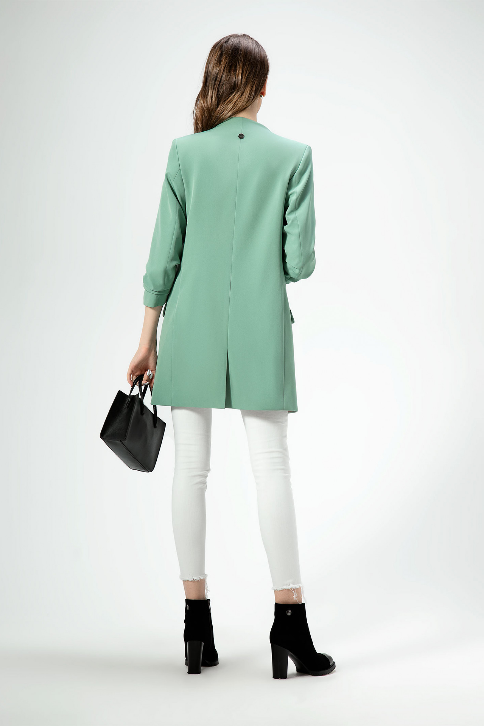 44 Жакет: Длина изделия - 82см, Длина рукава - 51см, Ширина плеча - 13см, Ширина по груди - 48см, Ширина по низу - 53см, Ширина рукава - 18.5см;