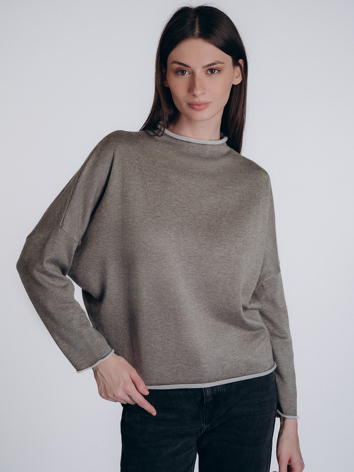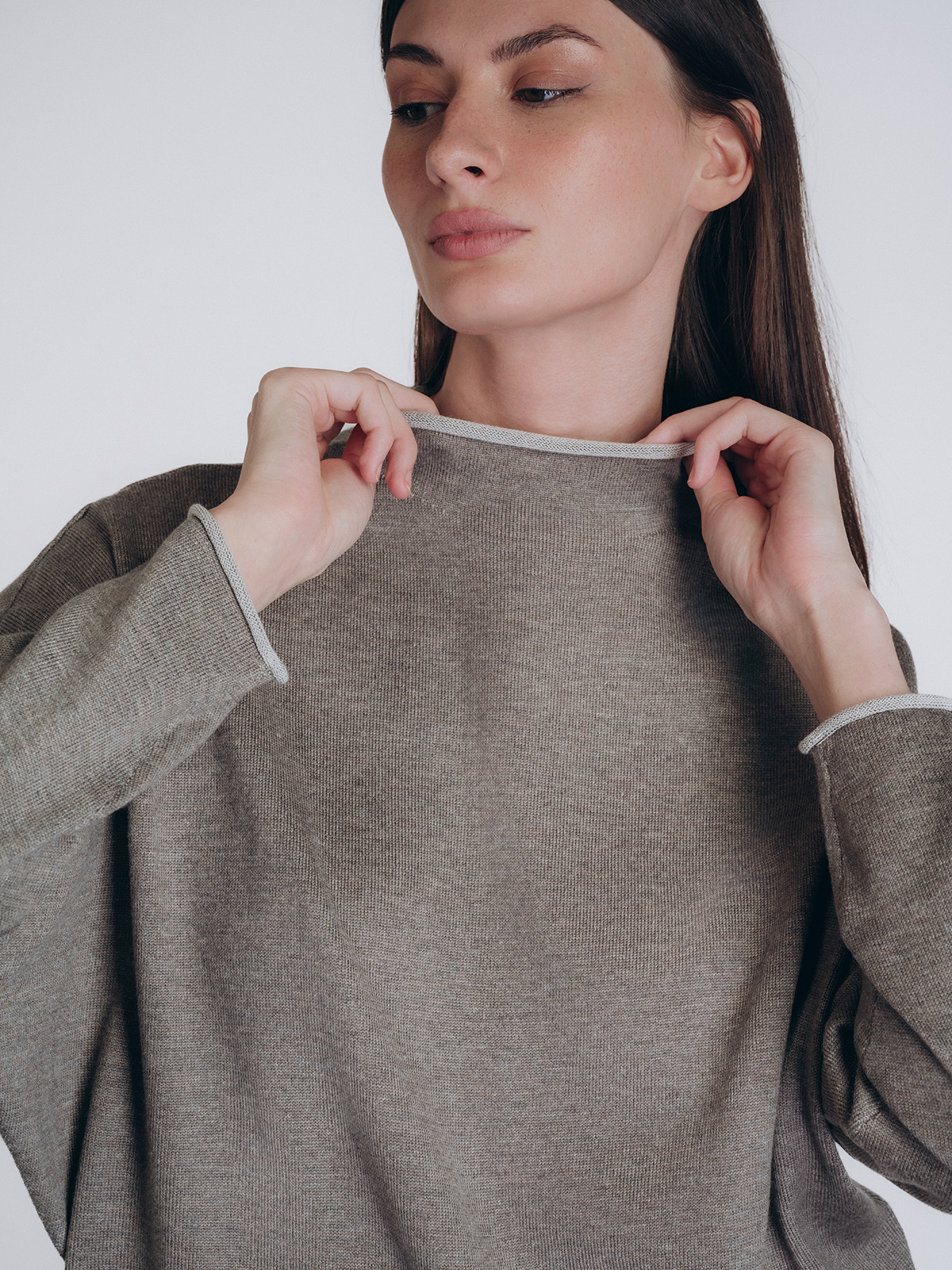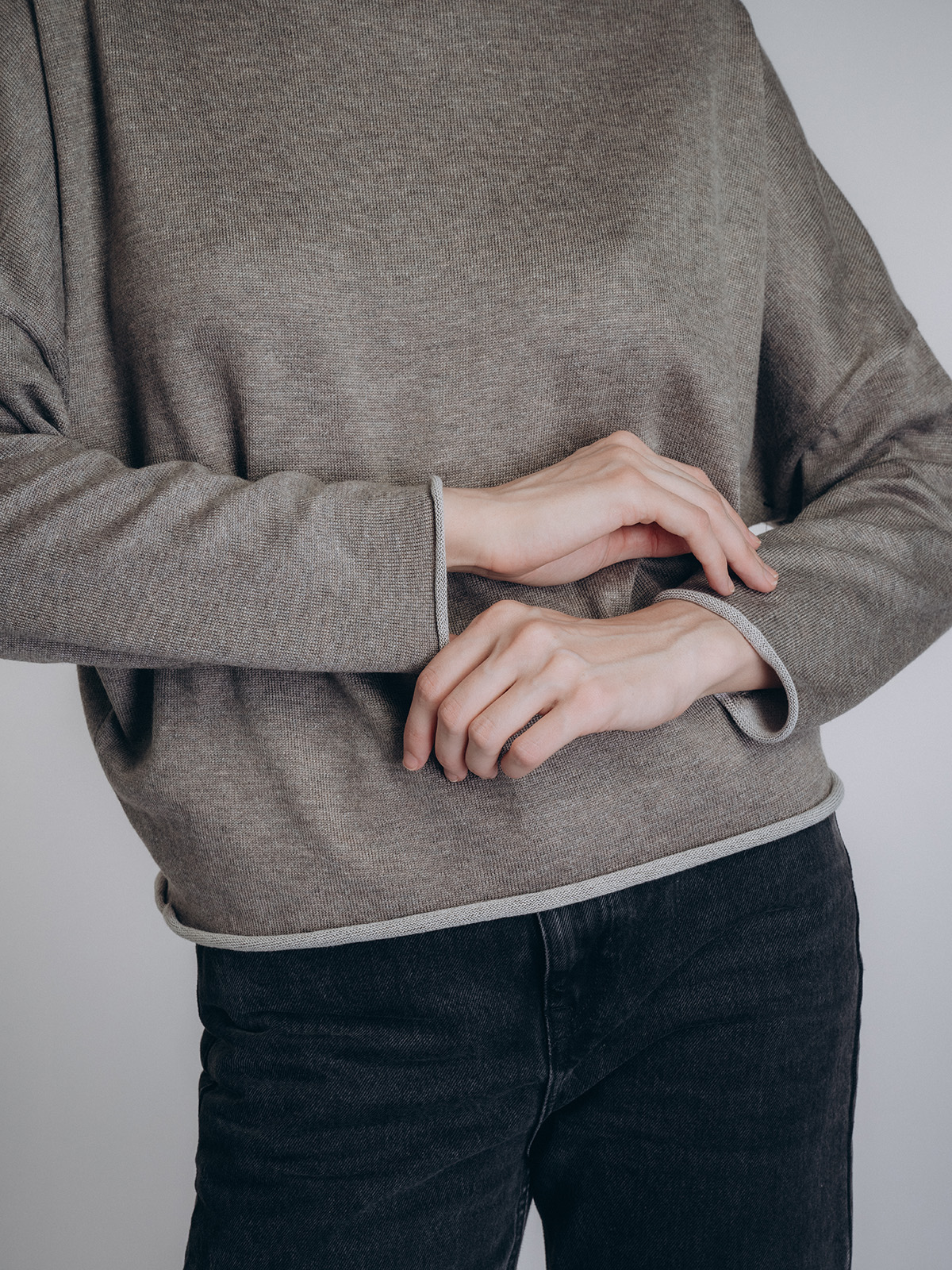 Мягкий серо-бежевый оттенок с текстурой. Этот нейтральный цвет позволяет легко сочетать кофту с различными элементами гардероба.