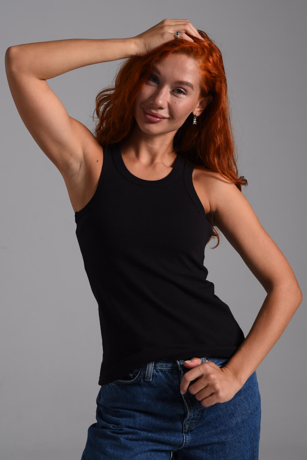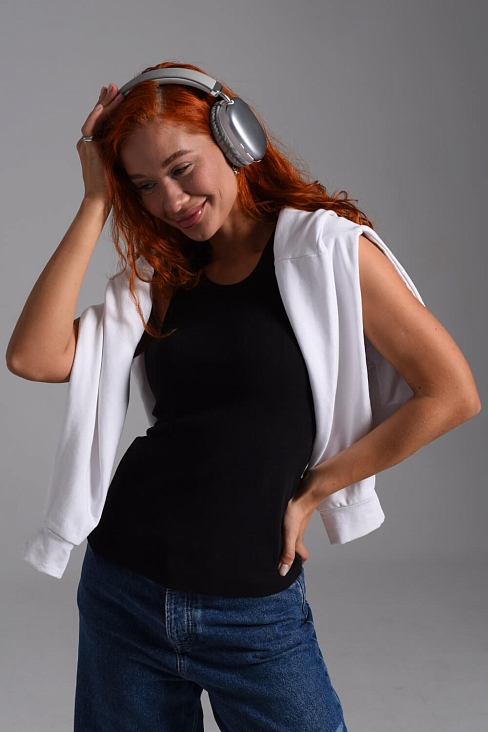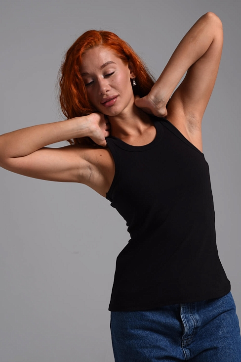 Трикотажная спортивная майка из мягкого хлопка, приталенная, идеально сочетается с джинсами, жакетами, шортами.